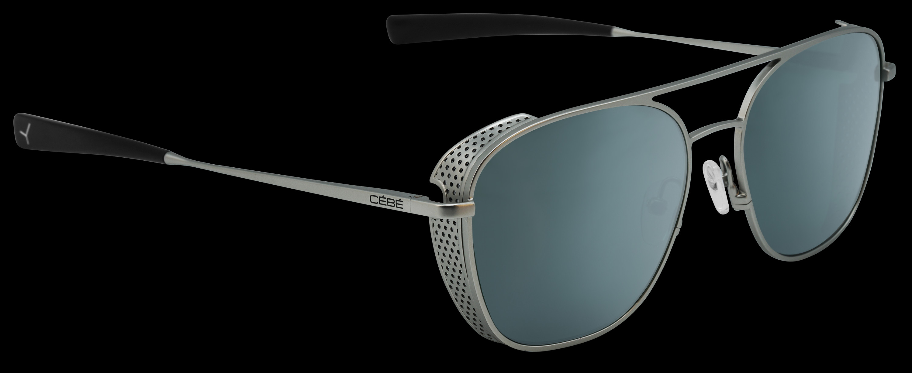 LIFESTYLE SUNGLASSES Pocta motoristickému sportu Kolekce Evasion čerpá inspiraci z dědictví motorsportu společnosti CÉBÉ. Výrazně sportovní povrchové úpravy, jako je použití matu a přidání perforace na bočních ocelových výztuhách. Pilotní tvar s rovnýma nožičkama a integrovaným flex závěsem. Široká nastavitelná lopatka na konci spánků pro dokonalou ergonomii a snadnou integraci pod helmu nebo čepici. Kompatibilní s RX.