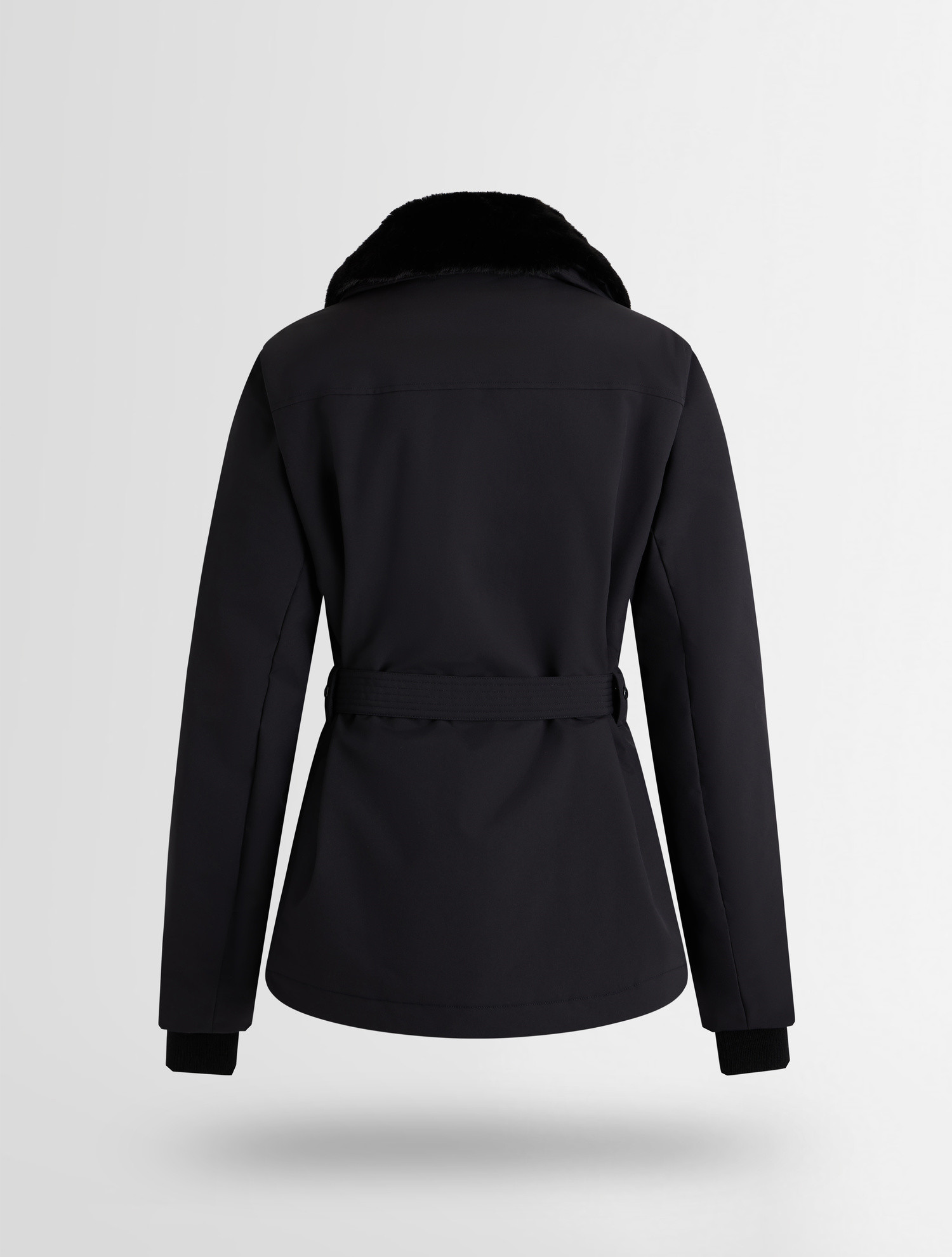 Černý strečový materiál, ženský ergonomický střih a promyšlené linie vytvářejí nadčasový look. Bunda se snadno kombinuje s výraznými kalhotami i s klasickou černou.