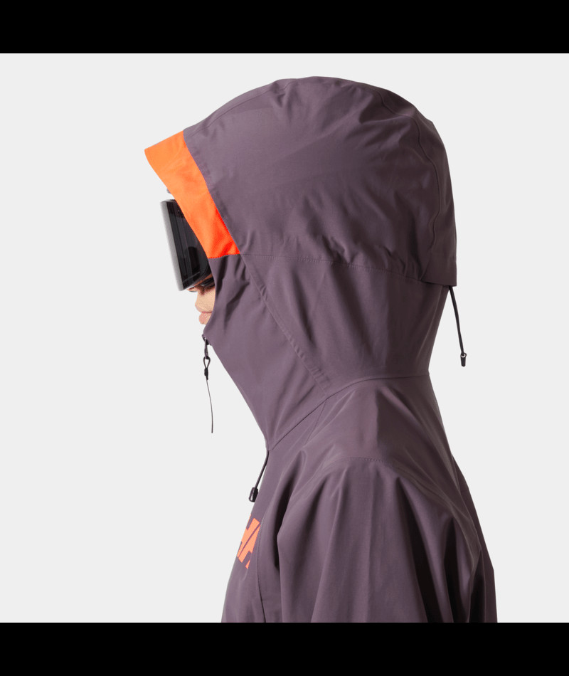 Čistá, sportovní silueta s třívrstvou konstrukcí se skvěle vrství podle teploty: v mrazivějších dnech přidejte zateplovací vrstvu, v teplejších dnech stačí base layer. Kapuce kompatibilní s helmou s neonovým kšiltem působí moderně a je praktická v extrémních podmínkách.