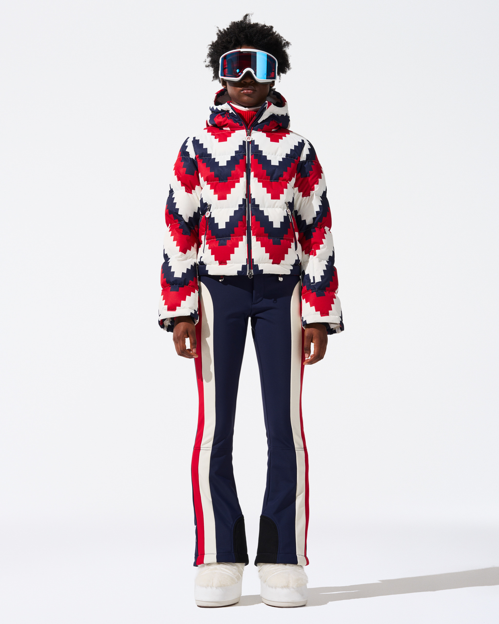 Nejprodávanější lyžařská bunda od PERFECT MOMENT Polar Flare se v této sezóně vrací v novém pokřiveném hvězdném potisku - odvážném a moderním pojetí našeho ikonického hvězdného loga. Tato bunda je vyrobena z technicky vyspělé voděodolné tkaniny, kombinuje styl s výkonem a je vybavena izolací z prachového peří o síle 700 plnidel, která zajišťuje výjimečnou hřejivost. Aktualizovaný design zahrnuje kapuci kompatibilní s helmou, vnitřní kapsy na lyže a brýle a vnější kapsu na rozšířeném rukávu, která má ideální velikost na skipas. Díky zkrácenému, vypasovanému střihu je tato bunda mírně malá, takže má elegantní, přiléhavou siluetu. Obstojte na sjezdovce a zároveň zůstaňte v teple a suchu. Kombinujte ji s našimi nejprodávanějšími lyžařskými kalhotami Aurora s vysokým pasem a svetrem Schild a získejte klasický vzhled Perfect Moment.