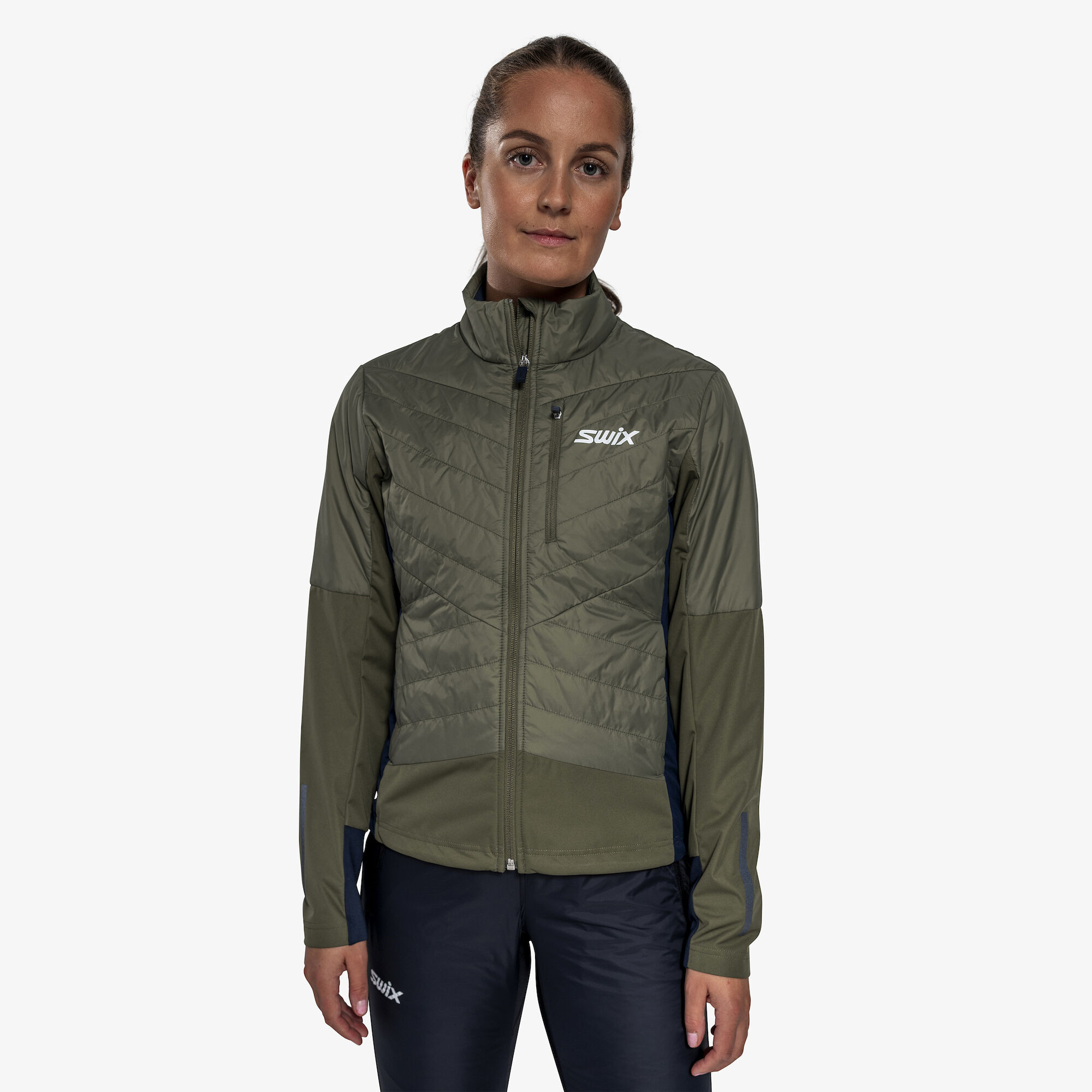 Zateplovací bunda Dynamic Hybrid Insulated Jacket je vyrobena pro běh na lyžích v chladnějším počasí a při vysoké intenzitě. Konstrukce s mapováním těla vás udrží v teple a suchu. Hybridní bunda s tepelně izolační vrstvou Primaloft na přední straně, ramenou, horních rukávech a límci. Třívrstvý materiál na spodní přední straně těla, rukávech a bočních panelech pro ochranu proti větru. Lehčí panely na zadní straně pro prodyšnost. Reflexní prvky na středu zad a rukávech. Pružné manžety na spodním lemu rukávů. Nastavitelná šňůrka na spodním lemu těla. 3 kapsy na zip: 1 na vnější hrudní kapse a 2 kapsy na ruce.