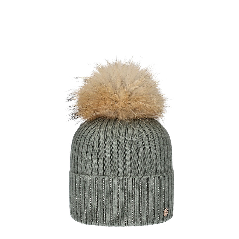 RŮŽOVÁ KŮŽE. ČEPICE S ŽEBRY A S KAMÍNKY NA OTOČENÉM OKRAJISvršek: 58 % viskóza, 25 % akryl, 13 % polyamid, 4 % angora Pon: Materiál: 100% kůže - kožešina - koňské žíně