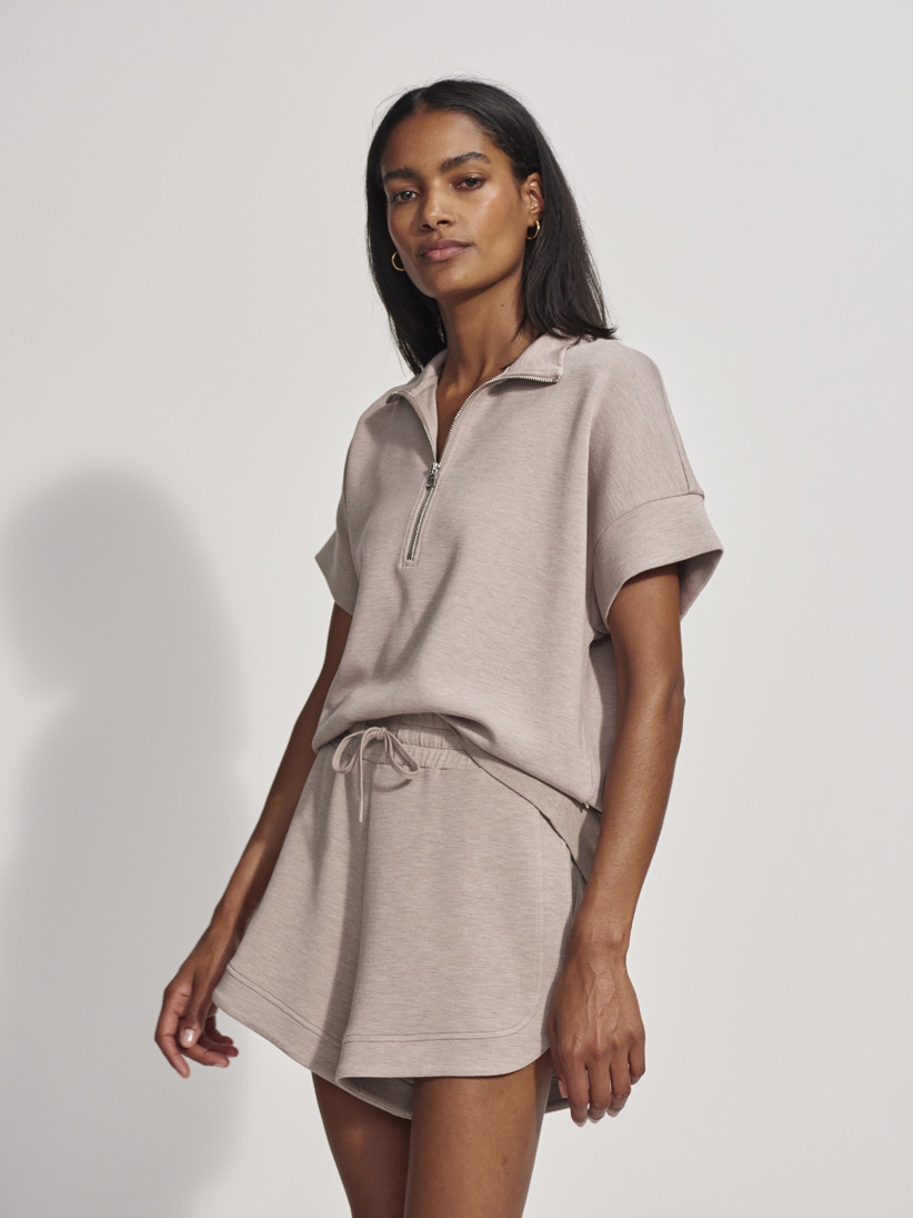Varley Ritchie Short Sleeve Sweat je nadčasová a pohodlná dámská mikina z mimořádně měkké tkaniny DoubleSoft®, která vás stylově doprovodí v každém ročním období. Díky krátkým rukávům, stojáčku a polozipu působí svěže, ležérně a skvěle se kombinuje s dalšími kousky z kolekce.