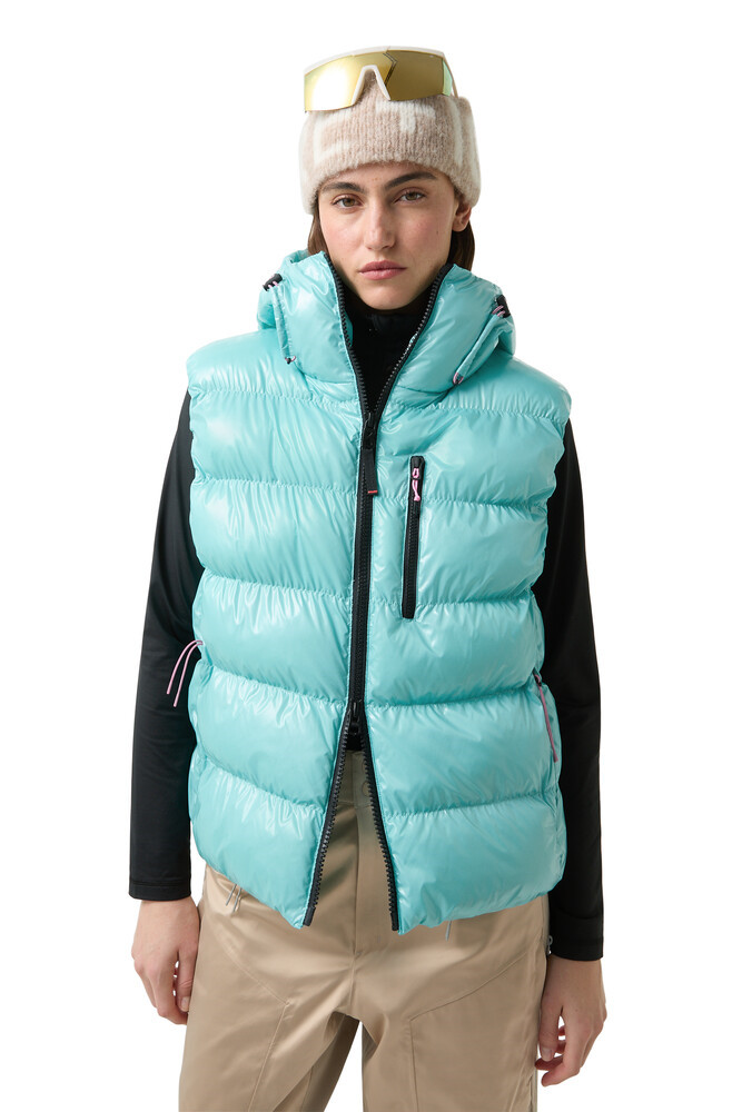 NAIMA prošívaná vestaNylon s lesklým povrchem charakterizuje prošívanou vestu Naima jako moderní vylepšení funkčního vzhledu. Teplá technická výplň a nastavitelná kapuce zajišťují pohodlí, které doplňují elastické průramky a stahovací lem.Prošívaná vesta v regular střihuS lesklým povrchemPevná kapuce se stahovací šňůrkou a zarážkamiElastické průramkyZapínání na dvoucestný zip s přívěskem BJedna kapsa na zip na úrovni hrudníkuDvě skryté kapsy na zip po stranáchTextilní nášivka FIRE+ICE na kapuciPlynulá podšívkaS vodoodpudivou úpravouTeplá technická výplňElastický lem se stahovací šňůrkou a zarážkamiDélka zad: 60 cmMateriálVnější materiál 11. vrstva: 100 % polyamidPodšívka 11. vrstva: 100 % polyesterPodšívka 21. vrstva: 100 % polyamidVýplň 11. vrstva: 100 % polyester (recyklovaný)Popis materiáluVodoodpudivá nylonová tkanina s lesklou povrchovou úpravou a technickou podšívkouVýplň ze 100% recyklovaných vláken: Thermore® Ecodown® – extra teplá a lehká s vysokou objemností, bez živočišných látek, prodyšná a snadno udržovatelná.Péčenepratneblechovatnesušit v sušičcenežehlitnečistit chemickymokré čištění