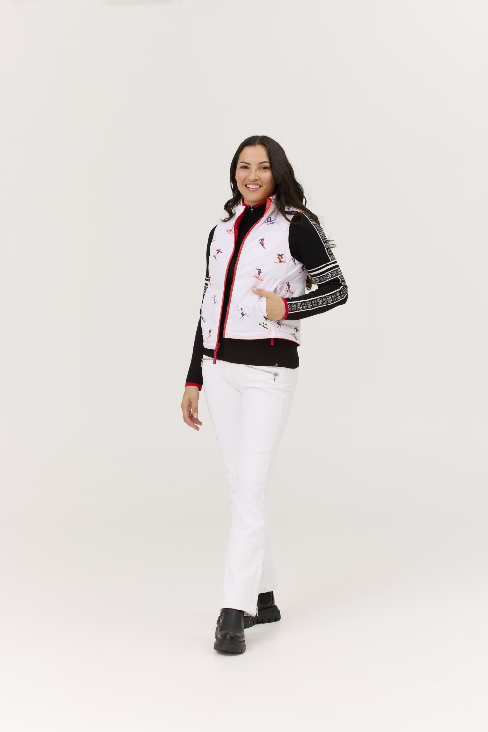 Tkanina 100 % polyester Izolace: 100 % polyester Dvě strany, jeden účel: teplo bez kompromisů. Vesta Sela je vodoodpudivá, oboustranná a připravená na cokoli, co den přinese – vyrobená z recyklovaných materiálů se sportovním střihem a měkkým prošívaným povrchem. || Tento materiál, vyrobený výhradně z recyklovaných vláken, je měkký, lehký a odolný – navržený tak, aby vám poskytoval pohodlí a zároveň snižoval dopad na životní prostředí. Má certifikaci Bluesign® a je vodoodpudivý, což z něj dělá ideální volbu pro vysoký výkon a teplo v chladných podmínkách. || Délka 22" Oboustranná prošívaná vesta Na druhé straně vlastní ilustrace Kapsy na zip Elastické boční panely Vnější materiál a podšívka: Downproof, bez fluorovaných uhlovodíků DWR, recyklovaný polyester Boční panely: viskóza / nylon / spandex Výplň: Recyklovaná polyesterová izolace Perte v pračce na jemný program. Nebělte. Nepoužívejte aviváž. Sušte v sušičce na nízkou teplotu s dvěma čistými tenisovými míčky. || Perte v pračce na jemný program při nízké teplotě. Nebělte. Nepoužívejte aviváž. Sušte v sušičce při nízké teplotě s dvěma čistými tenisovými míčky. || Certifikace Bluesign Bez fluorovaných uhlovodíků DWR Recyklovaná vlákna Oboustranná