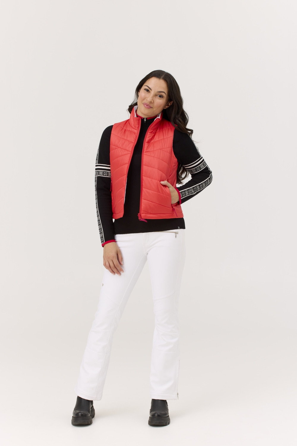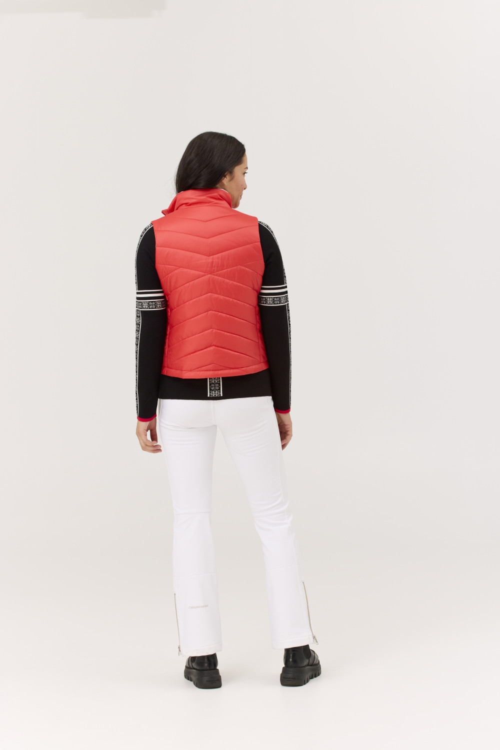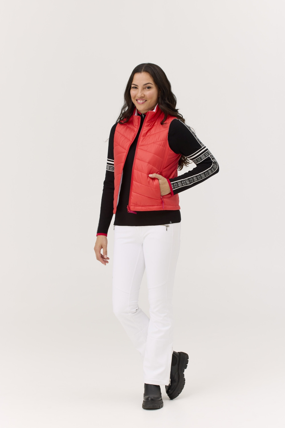 Dvě strany, jeden účel: teplo bez kompromisů. Vesta Sela je vodoodpudivá, oboustranná a připravená na cokoli, co den přinese – vyrobená z recyklovaných materiálů se sportovním střihem a měkkým prošívaným povrchem. || Tento materiál, vyrobený výhradně z recyklovaných vláken, je měkký, lehký a odolný – navržený tak, aby vám poskytoval pohodlí a zároveň snižoval dopad na životní prostředí. Má certifikaci Bluesign® a je vodoodpudivý, což z něj dělá ideální volbu pro vysoký výkon a teplo v chladných podmínkách. || Délka 22"