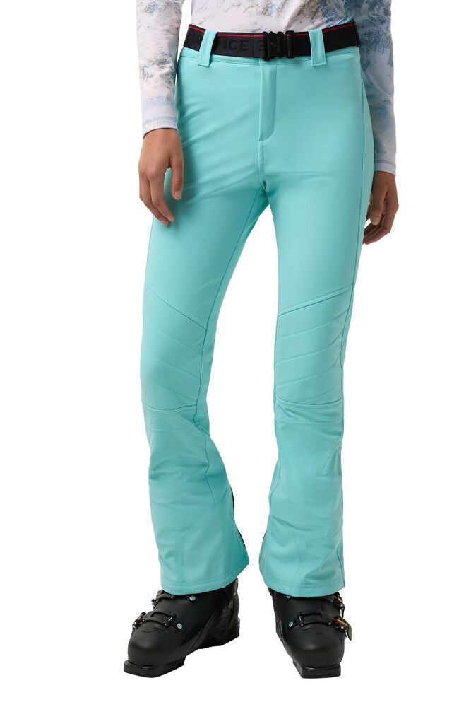 ZULA teplé softshellové lyžařské kalhotyTřívrstvá softshellová tkanina charakterizuje lyžařské kalhoty Zula jako funkční kousek, doplněný pasem s bederní ochranou a elastickým páskem. Detaily jako prošívané kolenní části a manžety s ochranou okrajů, zip a sněhová zábrana zdůrazňují funkční design. Charakteristické detaily dodávají moderní vzhled.Regular FitStřední pasSoftshellové lyžařské kalhoty v regular střihuV designu jetpantsManžety nohavic s ochranou okrajů, zip vzadu a vnitřní sněhová zábranaZapínání na dva patentky s logem, skrytý háček a zipPevný pas s elastickým páskem FIRE+ICE a přezkou s vyraženým logemChránič bederní páteře na zadní straněProšívané kolenní partieTvarující švyLogo nášivka na zadní smyčce páskuS odolnou vodoodpudivou úpravouVodní sloupec: 10 000 mmProdyšnost: 10 000 g/m?/24hZateplená 3vrstvá konstrukceMateriálVnější vrstva1. vrstva: 77 % polyamid, 23 % elastan2. vrstva: 100 % polyuretan3. vrstva: 94 % polyester, 6 % elastanPopis materiáluVodotěsný, prodyšný 4-směrný strečový materiál v softshellové kvalitě s odolnou vodoodpudivou úpravouDruhá vrstva z technických vláken, třetí vrstva z pružných technických vláken.Péčejemné praníneblechovatjemné sušenížehlení na ruční teplotunečistit chemickymokré čištěníPoužívejte jemný prací prostředek, nepoužívejte aviváž.