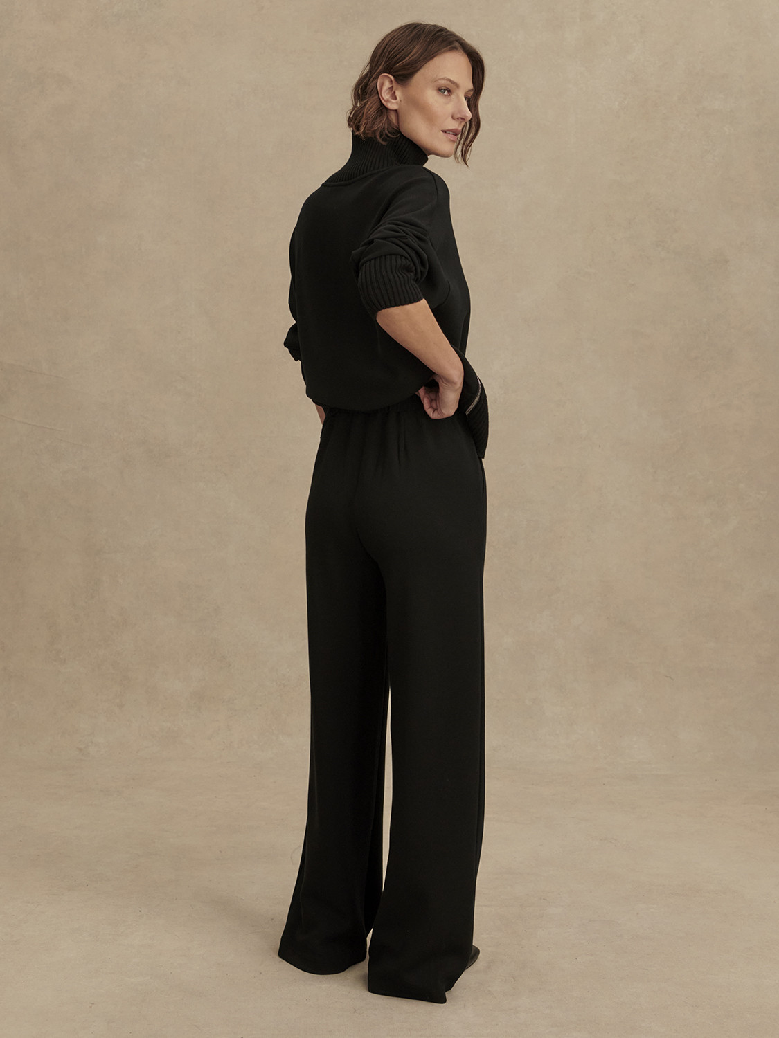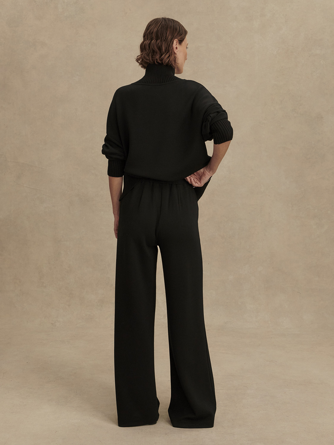 Kalhoty mají extra široký střih nohavic, který se výrazně odlišuje od klasického wide-leg modelu a dodává výrazný, módní efekt. Vysoký pas, plissé záhyby vpředu a plochý elastický pas zajišťují komfort i strukturu. Boční kapsy přidávají funkčnost, zatímco hladký přední díl bez výrazných švů zůstává čistý a elegantní. The Extra Wide Leg Pant se hodí k minimalistickým topům nebo oversized mikinám – ideální nejen na volný čas, ale i pro stylově relaxované pracovní dny.