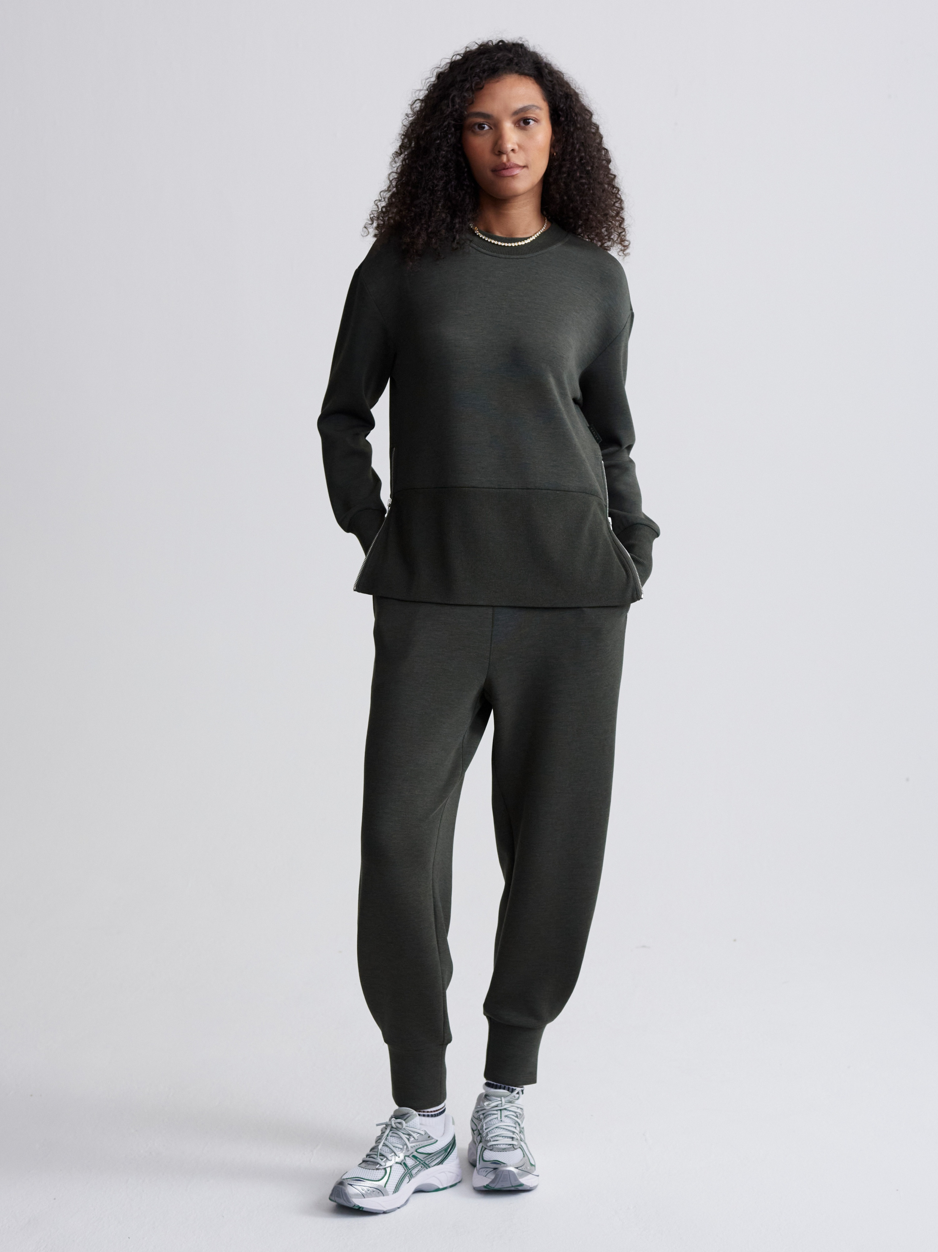 Tepláky Varley Relaxed Pant jsou moderní dámské kalhoty navržené pro maximální pohodlí, nadčasový vzhled a snadnou kombinovatelnost. Jsou vyrobeny z ikonické tkaniny DoubleSoft®, která je mimořádně měkká, pružná a lehká – ideální pro každodenní nošení, cestování i relax.