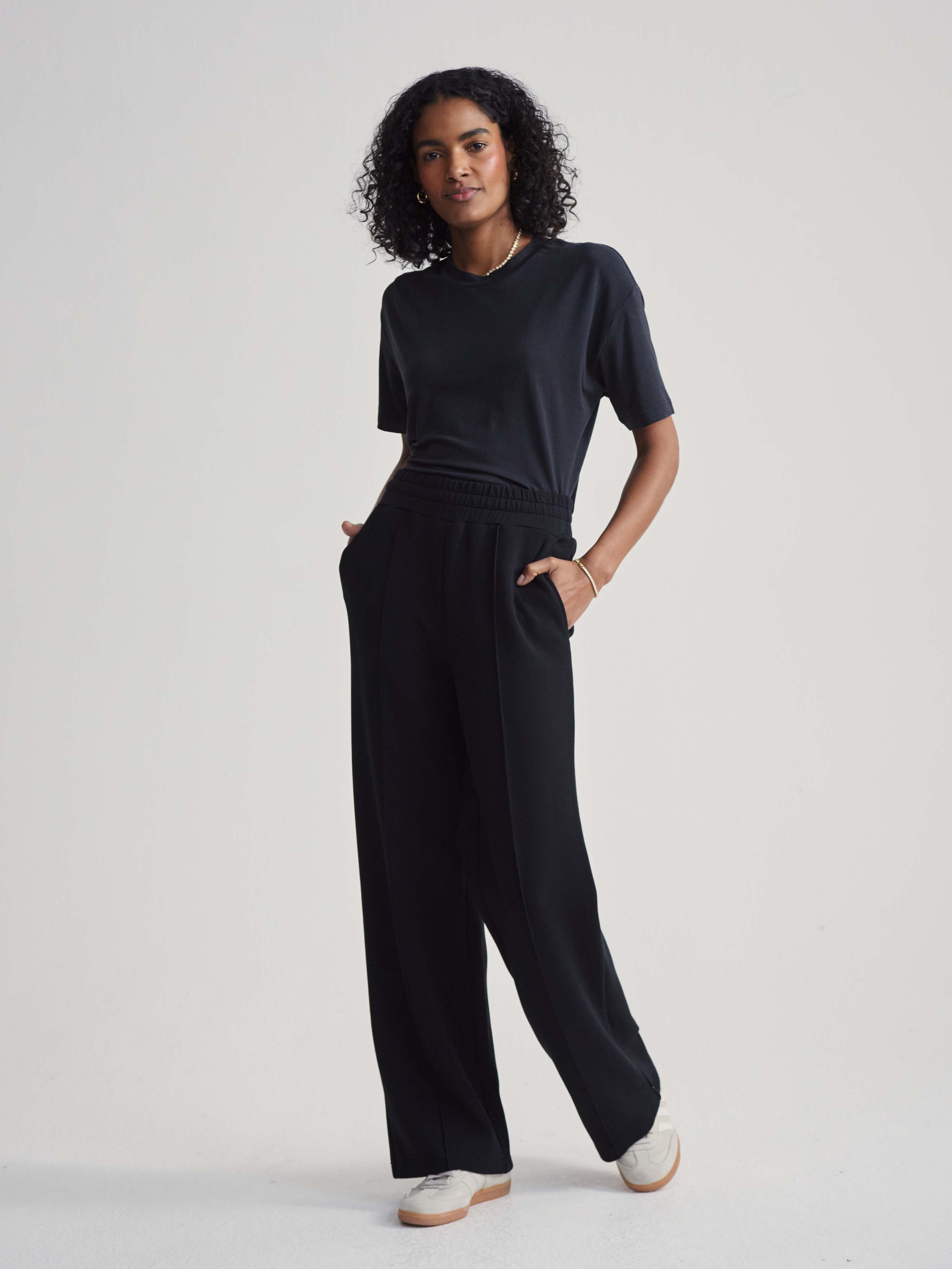 Zažijte naprostý komfort a styl s Varley Wide Leg Pant – prémiovými dámskými kalhotami ve standardní délce, které kombinují elegantní širokou siluetu s uvolněným každodenním pohodlím. Tento nadčasový model z ikonické tkaniny DoubleSoft® kombinuje uvolněný střih se sofistikovaným vzhledem a nabízí ideální rovnováhu mezi ležérním komfortem a elegantní siluetou. Perfektní pro cestování, volný čas i nenuceně stylové každodenní outfity.