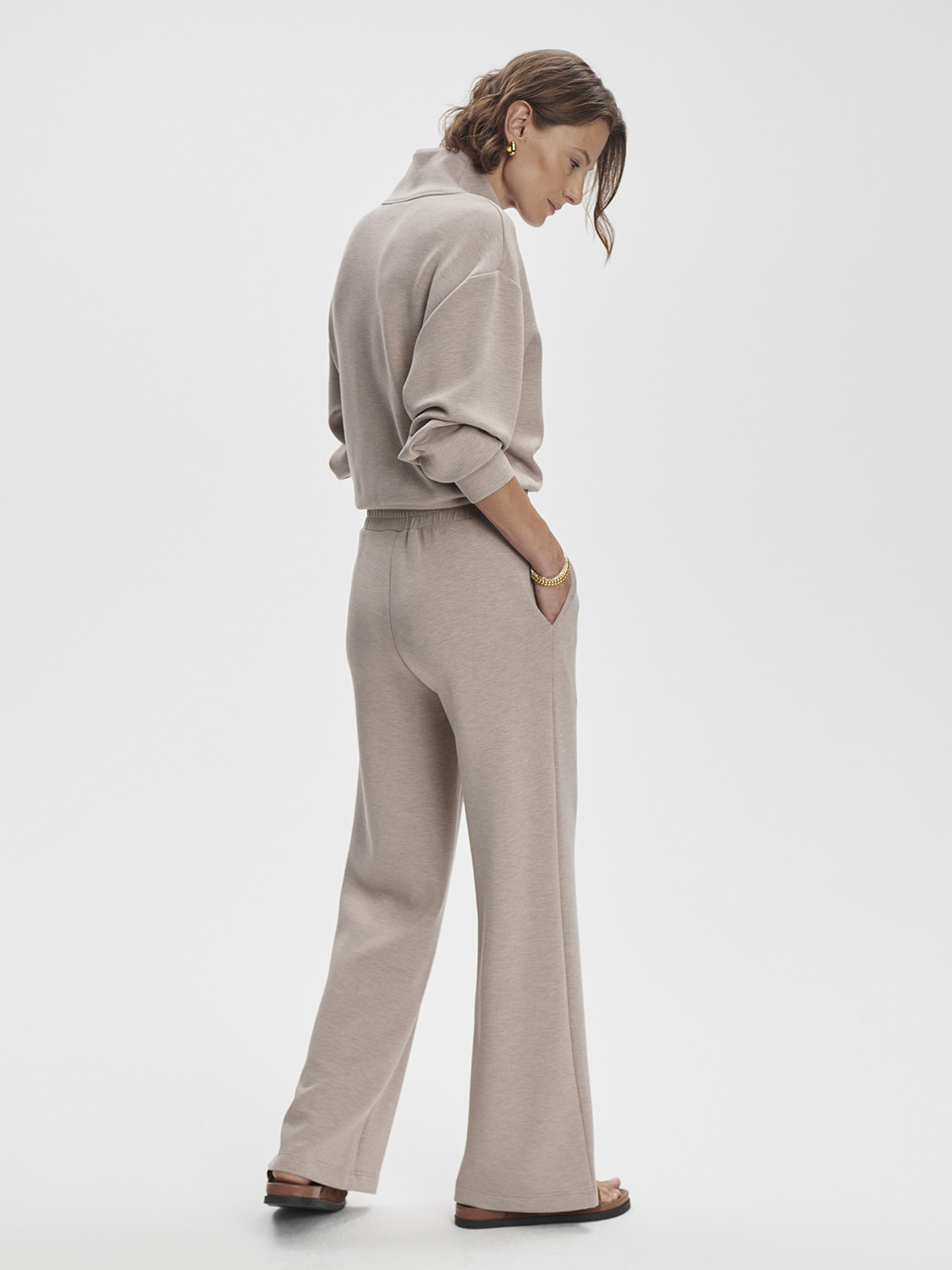 Dámské kalhoty Varley The Wide Leg Pant se širokými nohavicemi v prodloužené délce z prémiové tkaniny DoubleSoft® Zažijte naprostý komfort a styl s Varley Wide Leg Pant – prémiovými dámskými kalhotami ve standardní délce, které kombinují elegantní širokou siluetu s uvolněným každodenním pohodlím. Tento nadčasový model z ikonické tkaniny DoubleSoft® kombinuje uvolněný střih se sofistikovaným vzhledem a nabízí ideální rovnováhu mezi ležérním komfortem a elegantní siluetou. Perfektní pro cestování, volný čas i nenuceně stylové každodenní outfity. Styl & design Kalhoty mají široké nohavice , které plynule kopírují pohyb a vytvářejí dokonale vyváženou siluetu. Vysoký elastický pas se skrytým stahováním na šňůrku poskytuje pohodlí i přizpůsobivost. Boční kapsy dodávají funkčnost, zatímco minimalistické detaily zaručují čistý, nadčasový vzhled. The Wide Leg Pant se snadno kombinuje se svetrem či mikinou z kolekce VARLEY pro dokonale sladěný, sofistikovaný look. Key features ✔ Široké nohavice a vysoký pas – lichotivý střih, který prodlužuje siluetu ✔ Elastický pas s vnitřní stahovací šňůrkou – pohodlné přizpůsobení každé postavě ✔ Lehký a měkký materiál DoubleSoft® – příjemný na dotek i celodenní nošení ✔ Elegantní záševky – decentní, ale sofistikovaný detail ✔ Univerzální kousek – perfektně ladí s mikinami nebo svetry z kolekce SUMMIT-SPORT Materiál 81 % viskóza, 15 % polyester, 4 % elastan Péče Perte naruby ve vlažné vodě na jemný program s podobnými barvami. Před praním zavažte šňůrky. Nečistěte chemicky, nebělte, nesušte v sušičce. Sušte naplocho a žehlete na nízkou teplotu. Tyto kalhoty se širokými nohavicemi jsou nadčasovým základem šatníku pro ženy, které hledají styl bez kompromisů. Skvěle se kombinují s teniskami, balerínami i nazouváky – a snadno je obléknete k mikině i saku.
