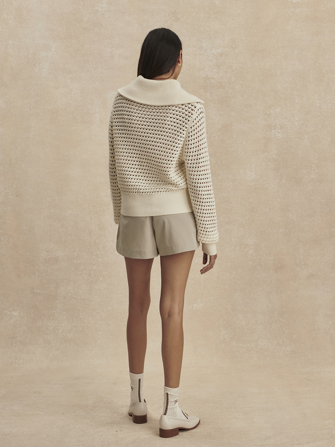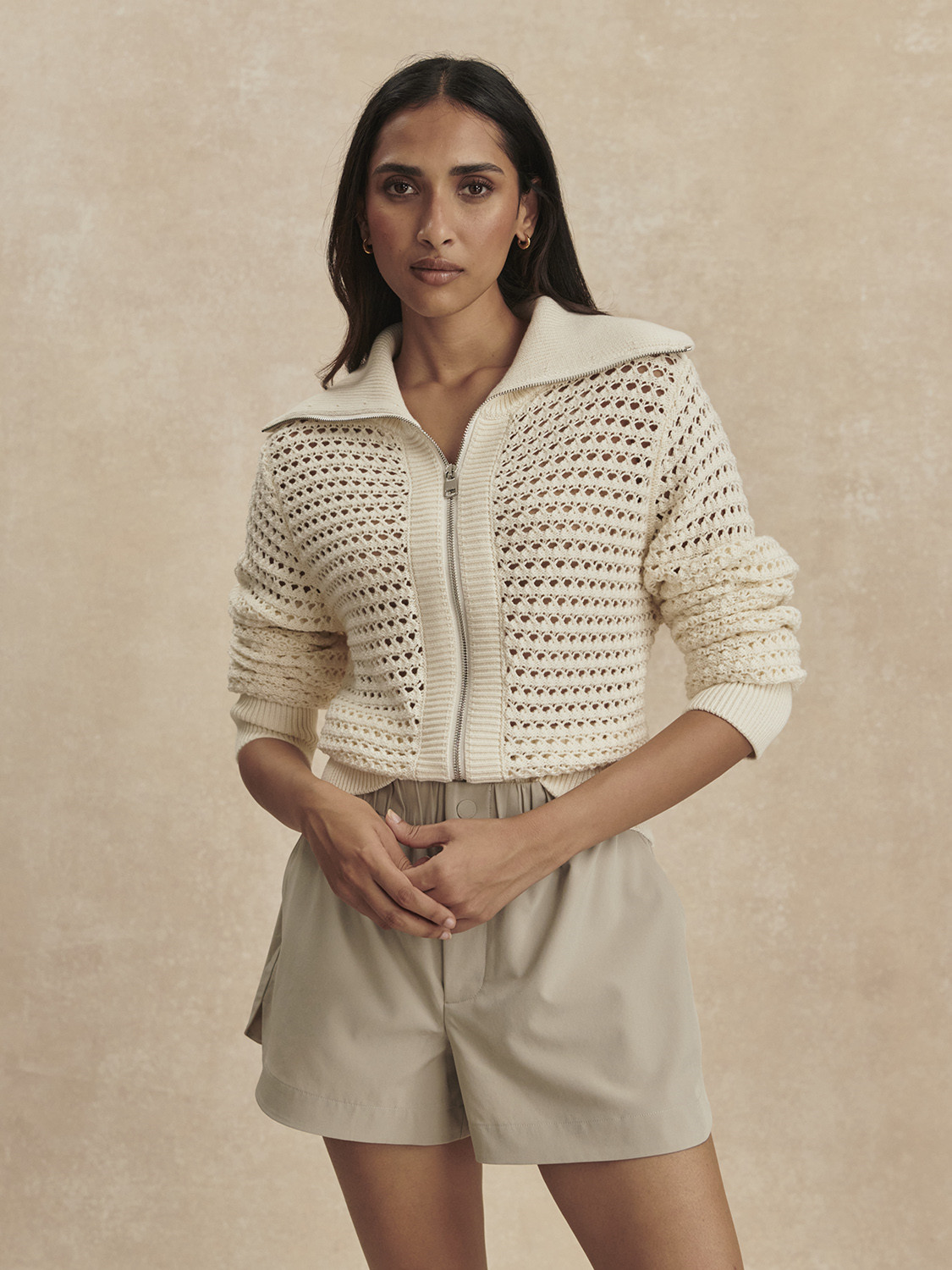 Tyto lehké, splývavé šortky jsou ideální na léto a kombinují městský šik s každodenním pohodlím.Šortky Nila se středně vysokým pasem jsou vyrobeny z lehké měkké strečové tkaniny a mají plně elastický, řasený pas pro perfektní padnutí, stejně jako zapínání na patentky a zip uprostřed předního dílu. Šikmé kapsy na bocích a tvarovaný lem dodávají strukturu uvolněnému střihu nohavic.Velikost S:Přední sed: 28 cmŠířka pasu: 37 cmVnitřní délka nohavice: 9 cmSložení: 86 % recyklovaný polyester, 14 % elastanPéče:Perte v pračce na jemný program, neblechte, nesušte v sušičce, perte s podobnými barvami, před praním otočte naruby, ihned vyjměte z pračky, žehlete naruby na nízkou teplotu.
