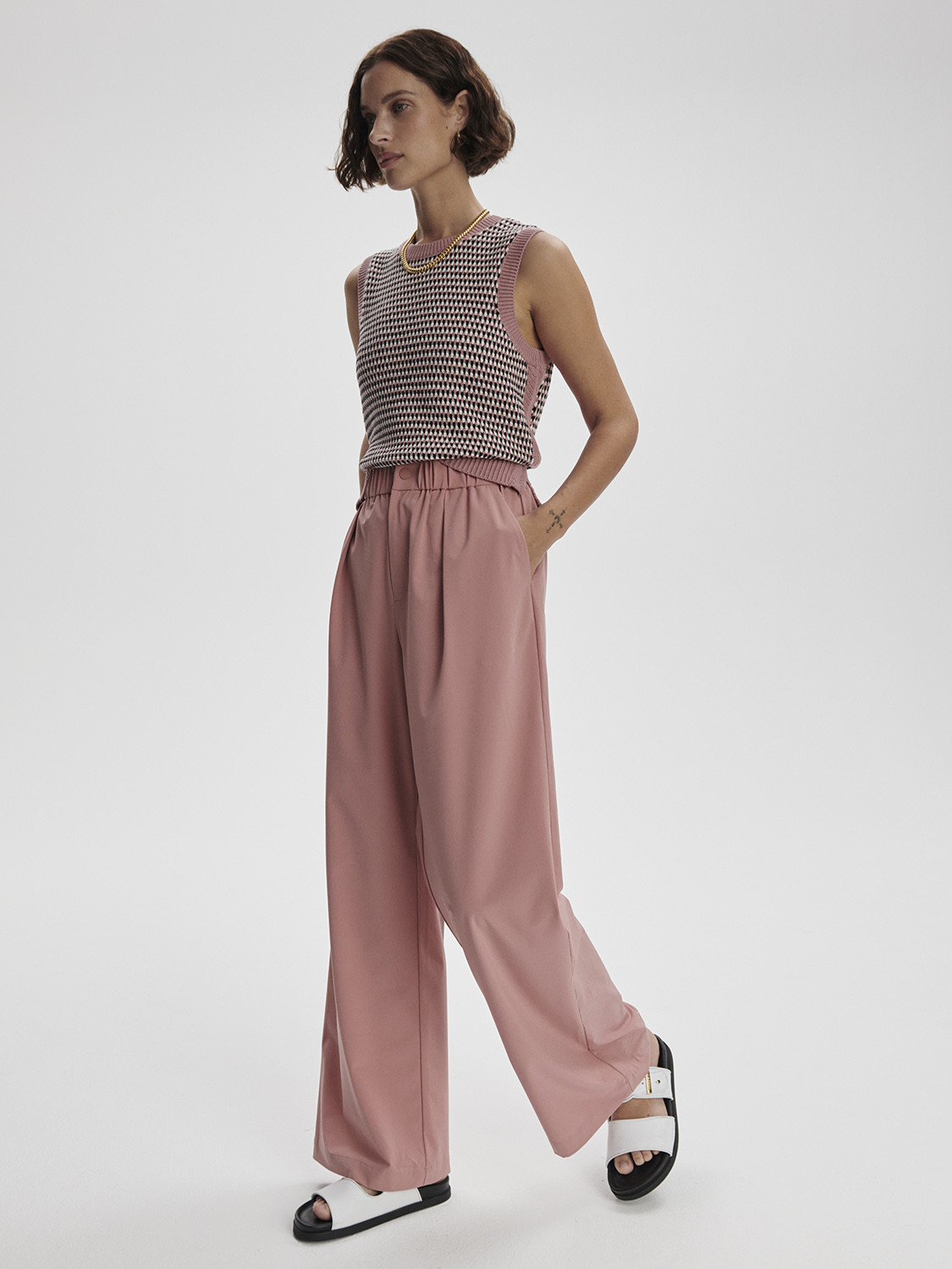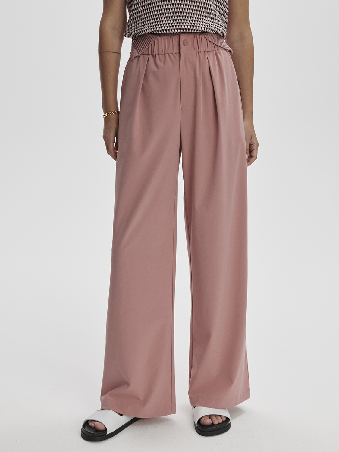 • Ash rose Růžovádetail Dámské kalhoty Varley Kayson Wide Leg 29.5