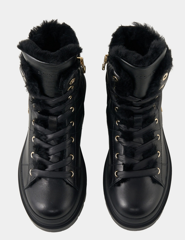 Dámské zimní boty BOGNER ST.MORITZ S 14 A z kolekce BOGNER propojuje funkčnost, luxusní vzhled a moderní alpine-chic estetiku. Luxusní obuv s gumovou podrážkou, koženým svrškem a hřejivou podšívkou z pravého beránka s vlnou (shearling).