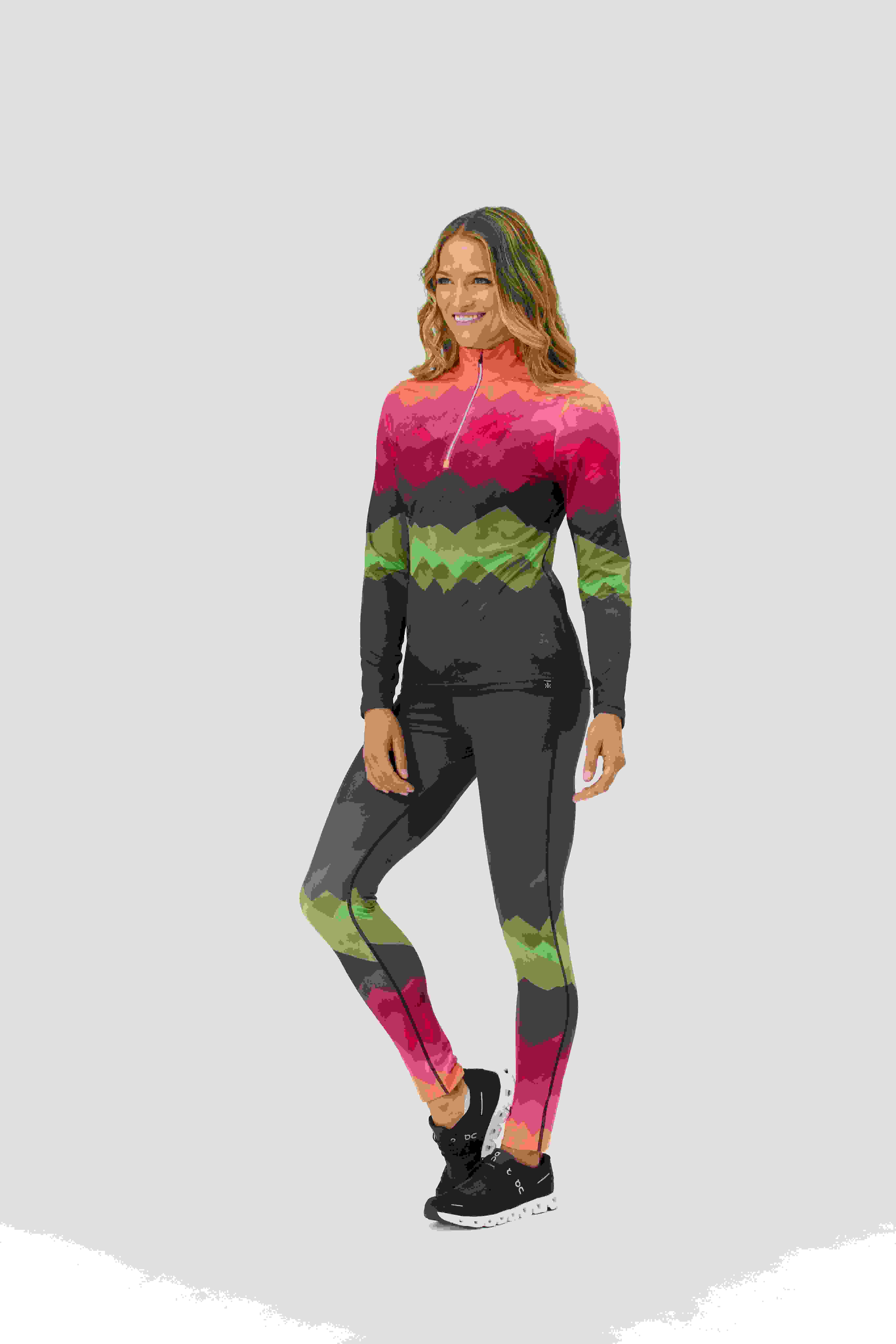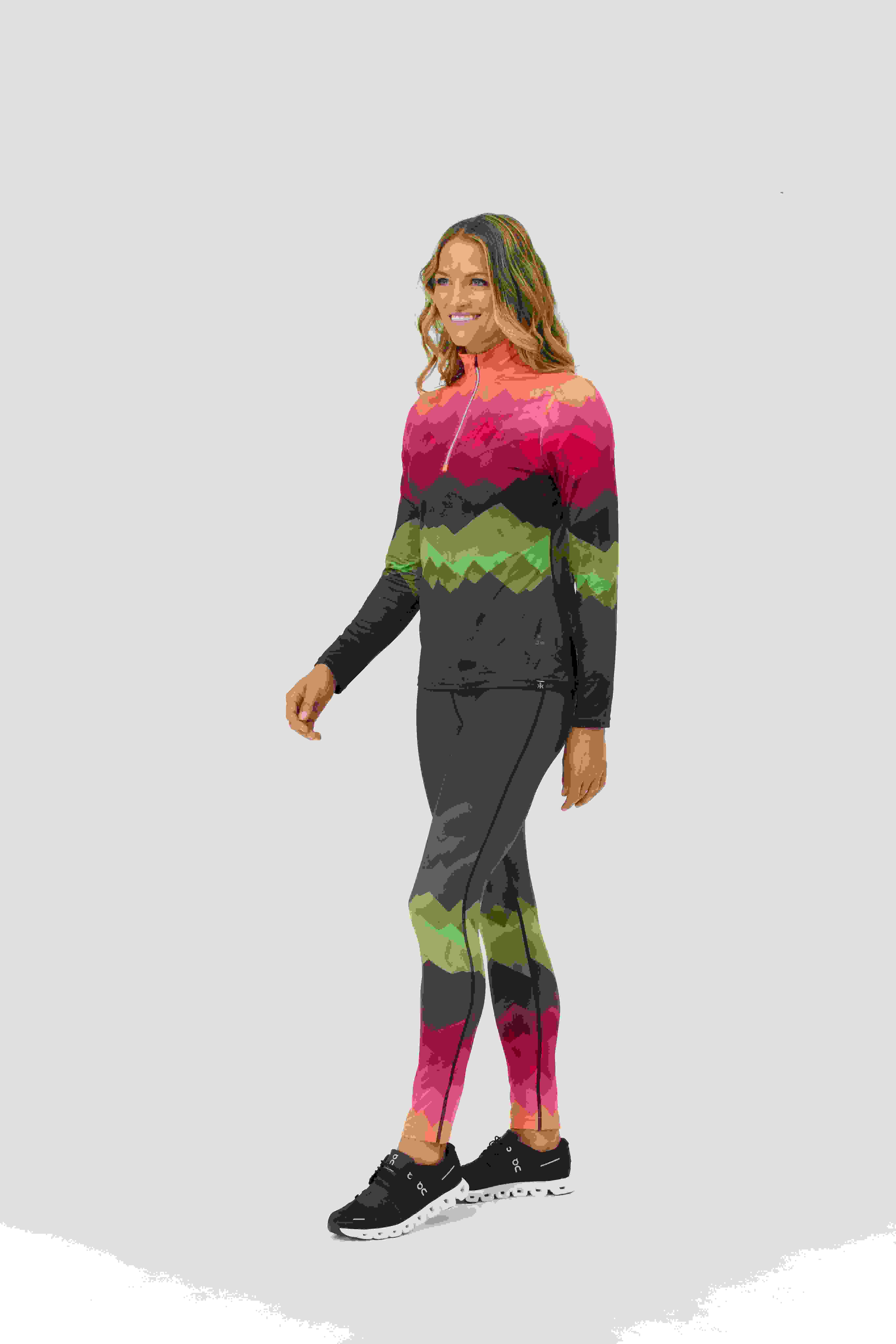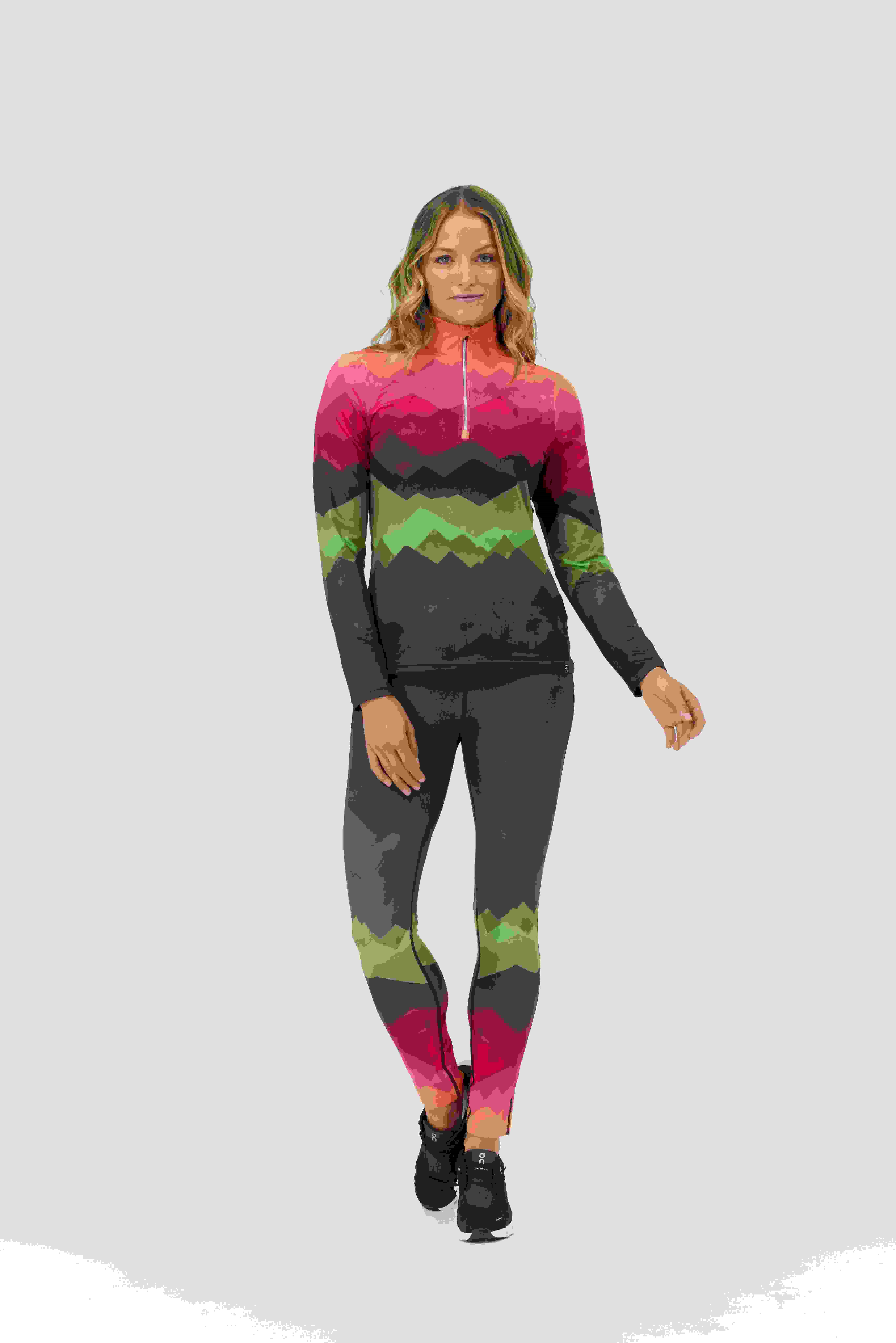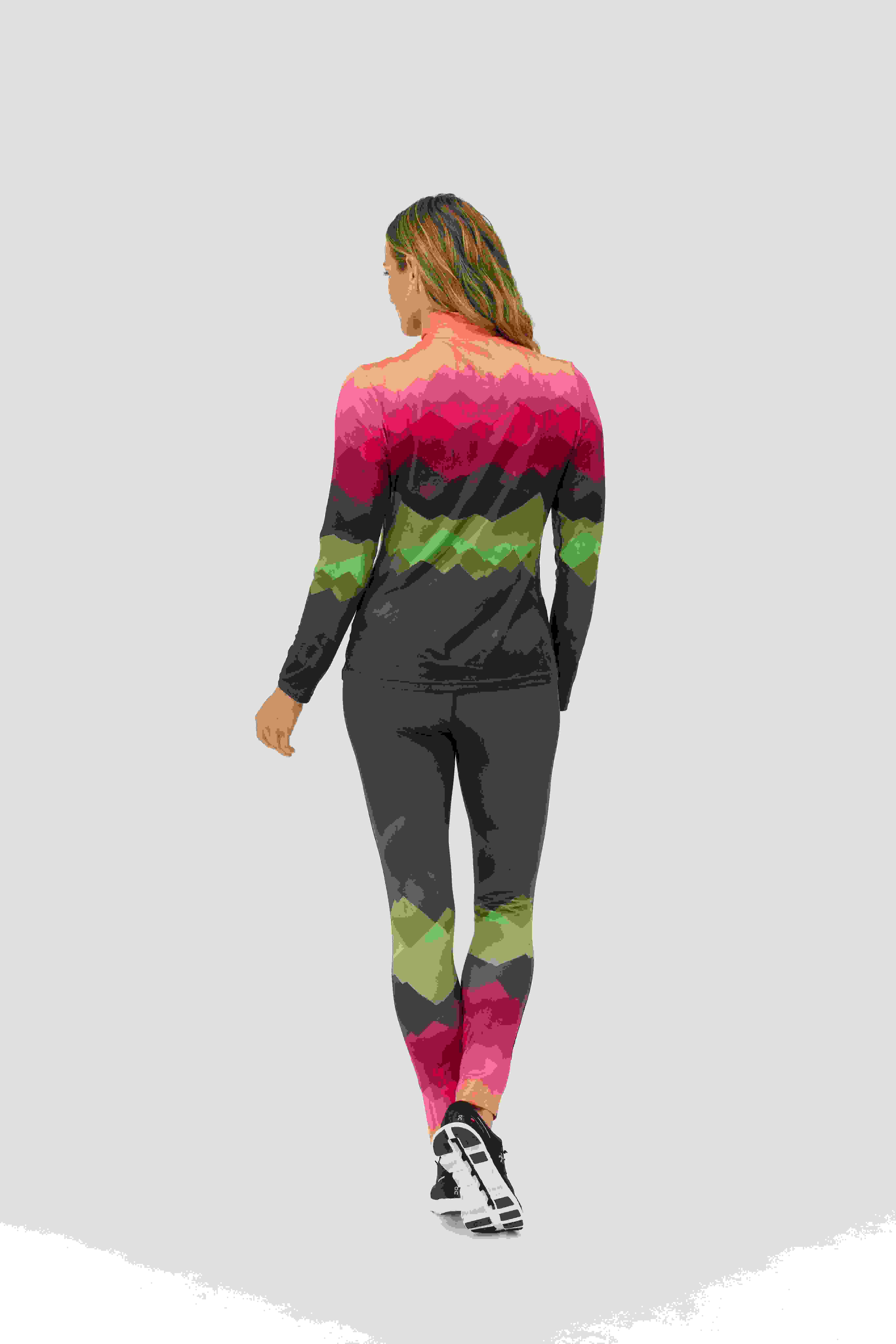 Honba za horizontem ve velkém stylu. Top Distances zdobí snová horská krajina v měnících se odstínech – měkký, pružný a stvořený pro pohyb s nádechem vysokohorské magie.
