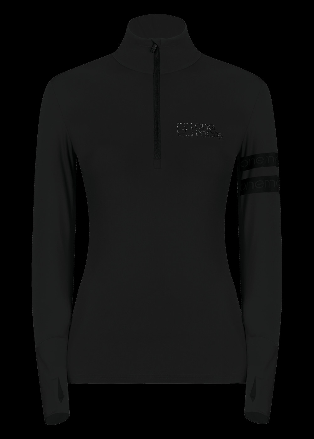 Rolák má polozip YKK, dlouhé rukávy s poutkem na palec, logo OneMore Swarovski.