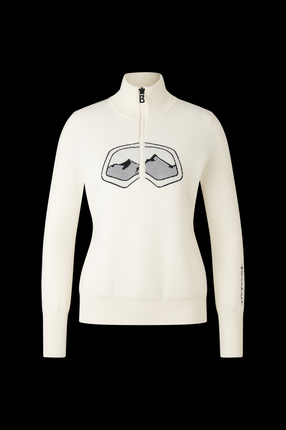 Dámský svetr BOGNER FIRE+ICE AZRA3 je rolákový svetr s kontrastním grafickým motivem lyžařských brýlí na hrudi a hor na zádech.