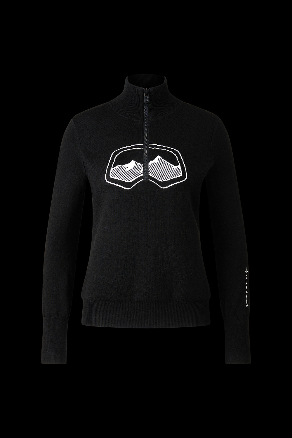 Dámský svetr BOGNER FIRE+ICE AZRA3 je rolákový svetr s kontrastním grafickým motivem lyžařských brýlí na hrudi a hor na zádech.
