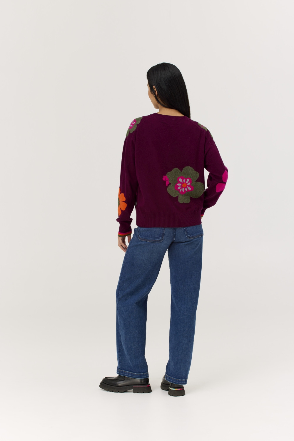 Oživte chladné dny svěžími květinovými vzory tohoto výrazným grafickým svetrem. Boxový střih a kulatý výstřih svetru Poppy nabízejí nekonečnou univerzálnost, zatímco měkká směs udržitelných vláken zajišťuje lehkost a prodyšnost. || Bohatá směs viskózy s certifikátem FSC, recyklovaného nylonu, merino vlny s certifikátem RWS, bavlny a kašmíru vytváří měkkou, teplou a udržitelnou tkaninu. Tento svetr, navržený pro každodenní luxus, nabízí regulaci teploty, prodyšnost a hedvábně hladký povrch, který je stejně příjemný na dotek, jako vypadá. || Délka 23,5"