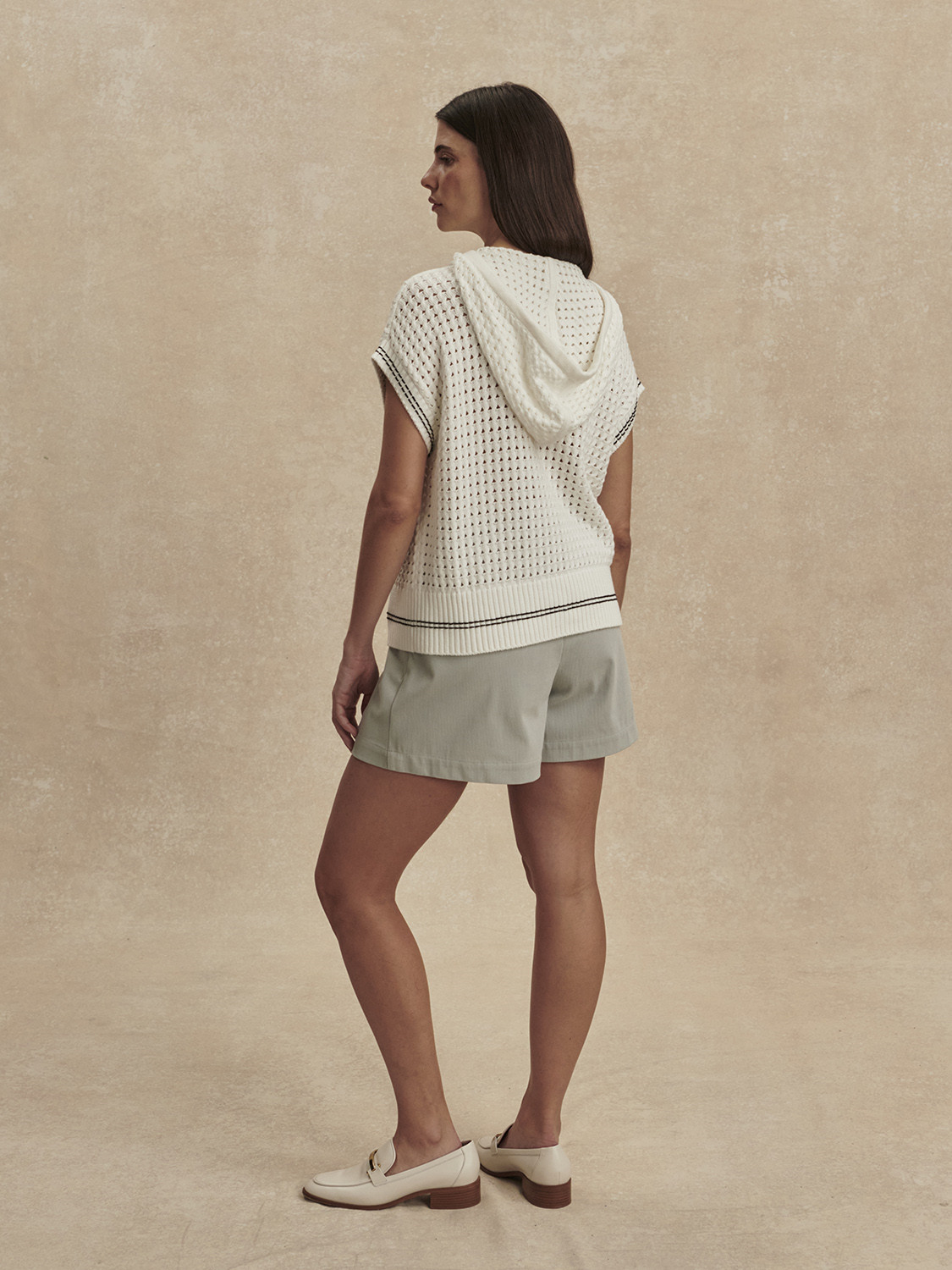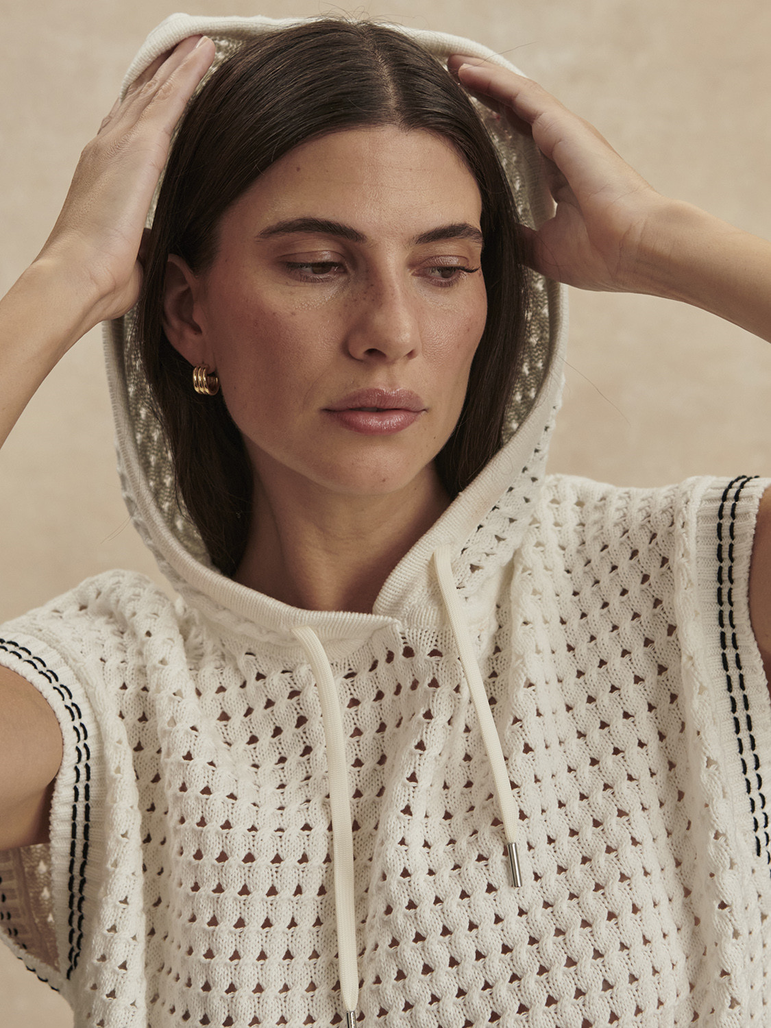 Moderní pojetí klasické mikiny – pletený model Vittoria je svěží jarní vrstvou.Posuňte svůj layering na vyšší úroveň s pletenou mikinou Vittoria. Uvolněný střih bez rukávů je ideální pro teplejší dny, zatímco strukturovaný twist cable pointelle vzor dodává celku chic nádech. Mikina je zakončena stahovací šňůrkou pro lehce sportovní look.Tento model má relaxed střih. Doporučujeme zvolit vaši běžnou velikost.Modelka ve studiu měří 170 cm a má míry 84 cm přes prsa, 61 cm v pase, 89 cm přes boky, na sobě má velikost S.Velikost S:délka předního dílu: 55 cmSložení:100 % bavlnaPéče:Prát na nízkou teplotu, nebělit, nesušit v sušičce, nežehlit, nečistit chemicky. Prát s podobnými barvami, po vyprání ihned vyjmout z pračky, sušit naležato a tvarovat ve vlhkém stavu.