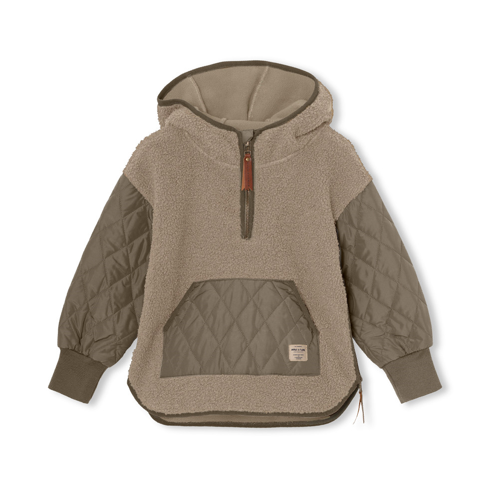 Termo bunda z recyklovaného polyesteru od MINI A TURE vyrobená ze směsi měkkého teddyfleece a tkané látky. Anorak má měkké žebrování kolem krku i na zápěstí. Má velkou kapsu na přední straně, praktický a ochranný a zip v bočním švu, díky kterému se snadno obléká a svléká. GRS (Global Recycle Standard) certifikace - obsahuje víc než 50 % recyklovaného materiálu.