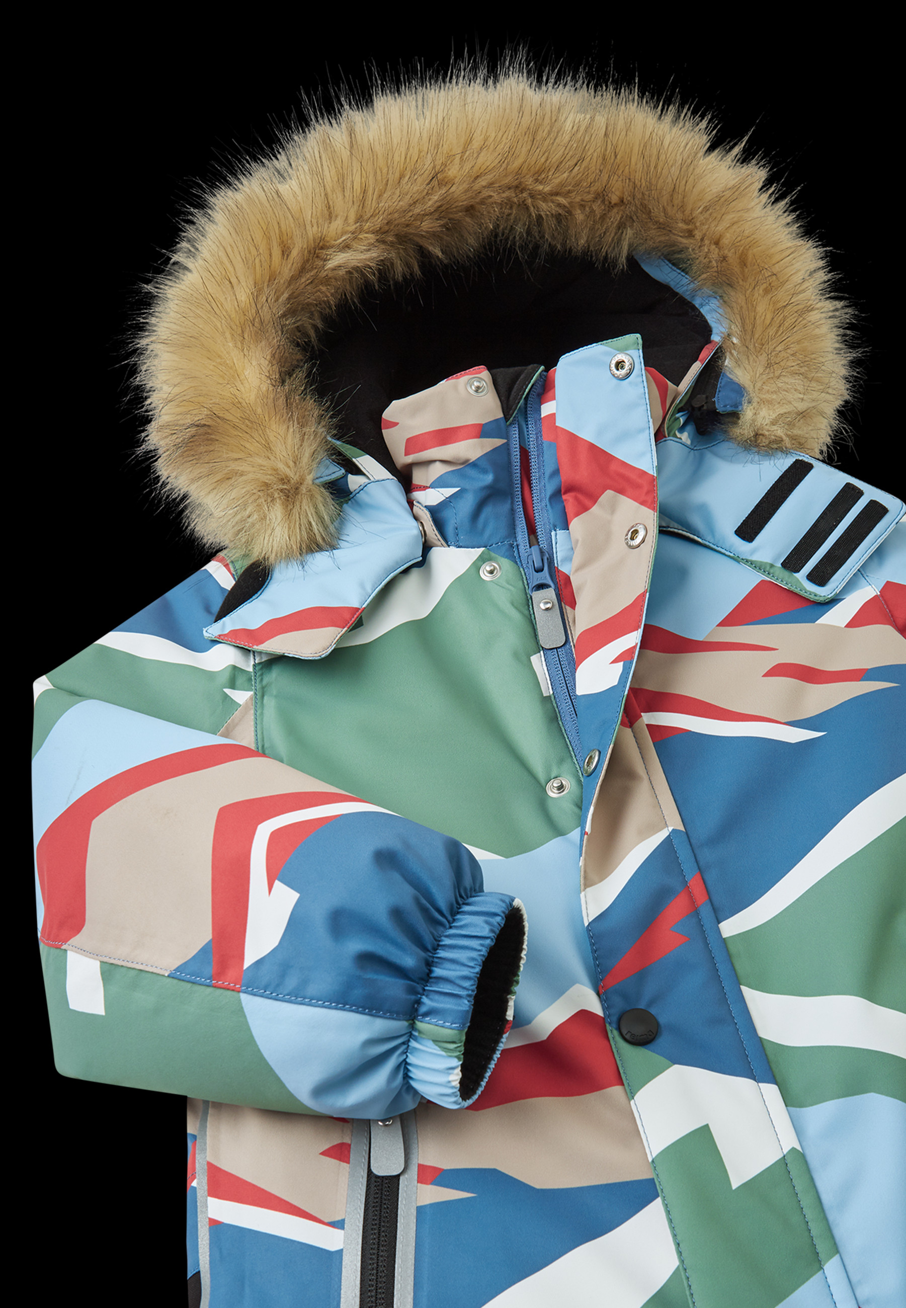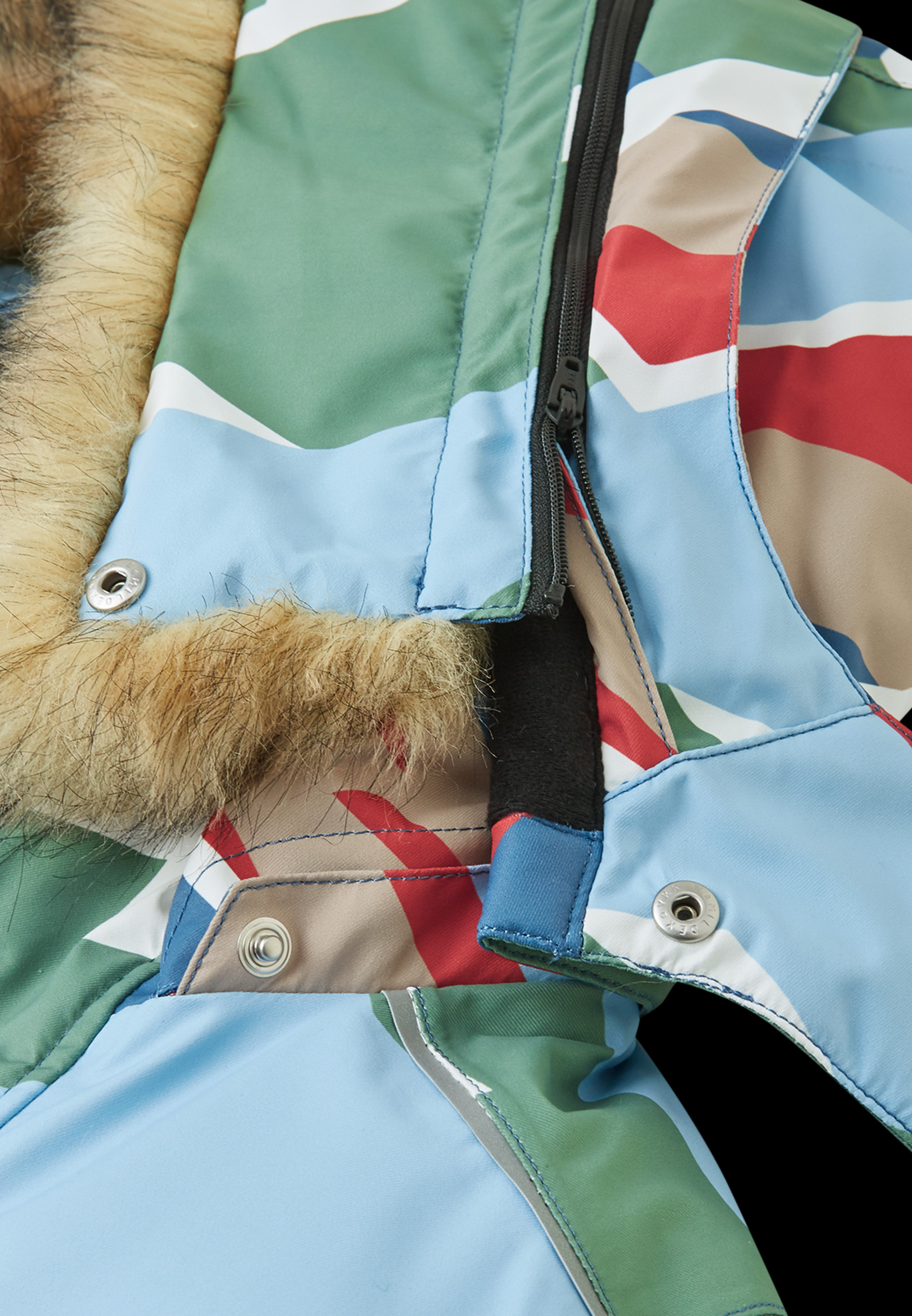Dětská membránová zimní kombinéza Reimatec Kipina je ušita z nepromokavého a zároveň prodyšného materiálu s povrchovou úpravou Bionic-Finish Eco. Na horní část kombinézy je použit materiál s vyšší pružností, na spodní s vyšší pevností a odolností. Všechny švy jsou vodotěsné. Kombinéza má snadno odnímatelnou kapuci s odepínacím lemem z umělé kožešiny a vyšší stojací límec.