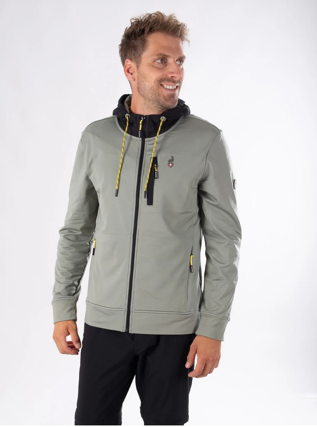 mikina hybridHybridní bunda ze dvou materiálů s kartáčovaným vnitřkem, s nastavitelnou kapucí z lehké tkaniny, která je svým vzhledem někde mezi městským a aktivním vzhledem. Bunda má dvě neviditelné kapsy na ruce a náprsní kapsu na zip.MATERIÁLY :- VLÁKNO: 100% POLYESTER 240 g/m2- KŘÍDLA: 100% POLYAMID 145gsm