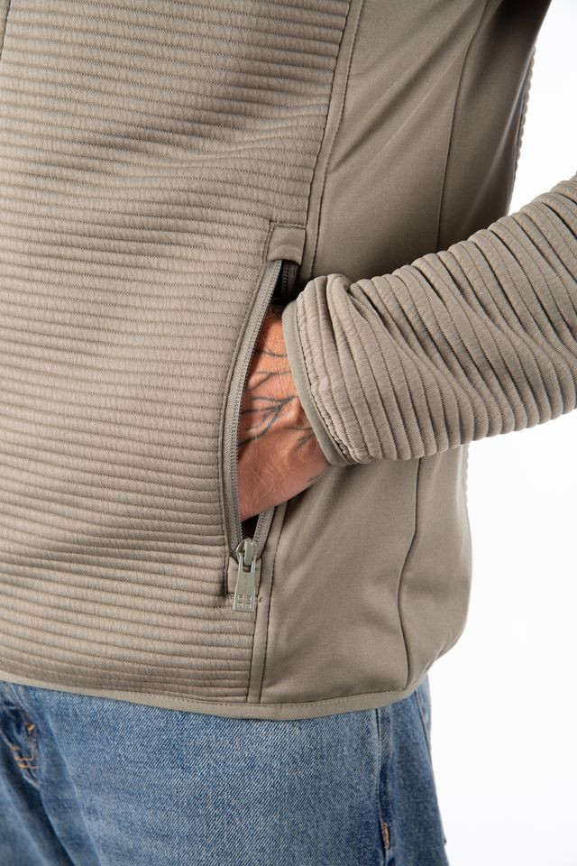 Pletená bunda Díky promyšlenému designu zajišťuje turistická bunda NUMIX vynikající prodyšnost a odvod vlhkosti, takže při fyzické námaze zůstanete v suchu. Strukturované části poskytují zvýšenou ochranu před chladem, zatímco strečové zóny zajišťují naprostou volnost pohybu. Materiál 1: pruhovaná síťovina 100 % polyester Materiál 2: strečový úplet 100 % polyester