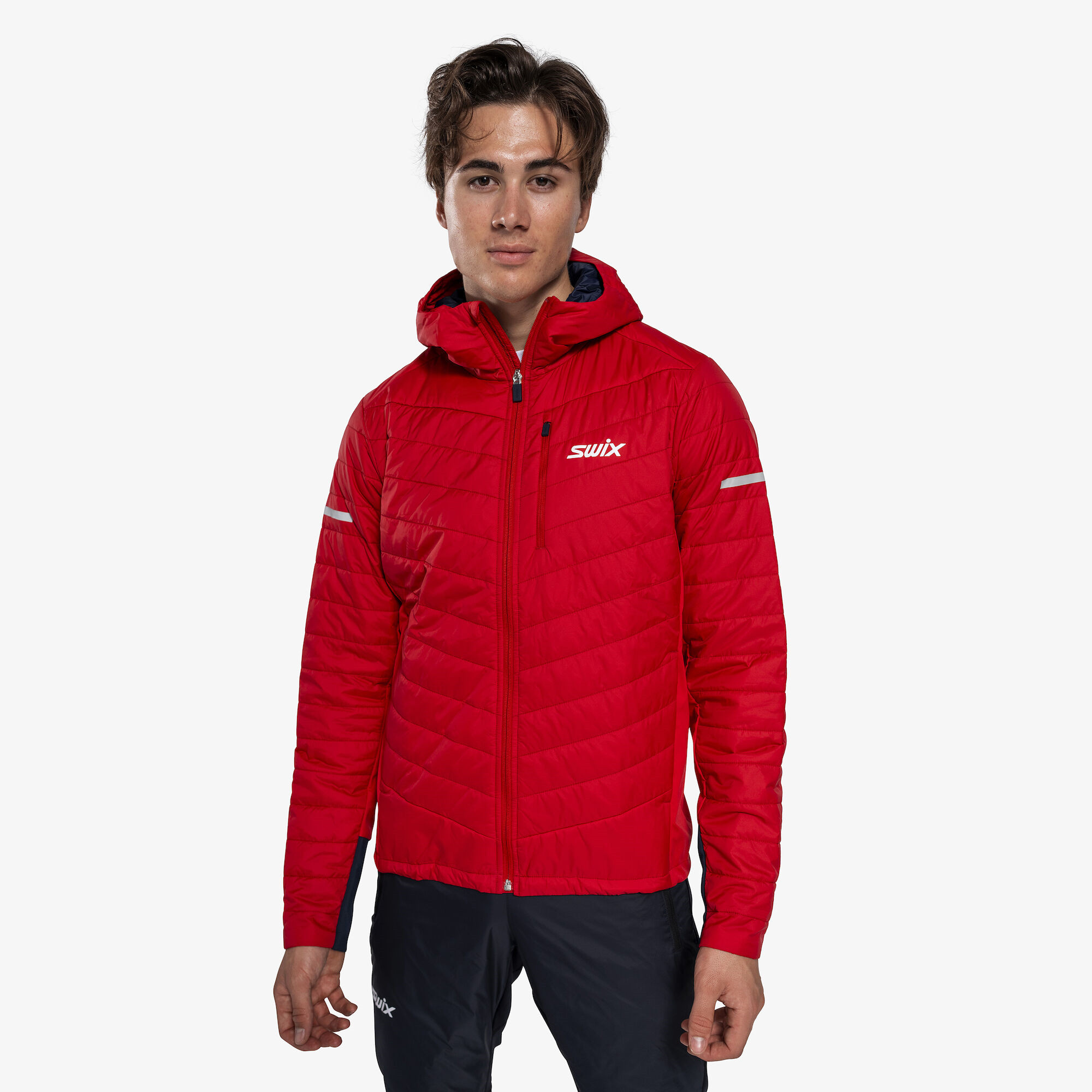 Dynamic Insulated Jacket je dokonalou volbou pro běh na lyžích v chladném a větrném počasí, ale tato zateplená bunda stejně dobře poslouží jako izolační vrstva či svrchní budna pro outdoorové aktivity. Konstrukce s mapováním těla vás udrží v teple a suchu díky těžší tepelně izolační vrstvě Primaloft na přední straně, vnějších rukávech a kapuci, zatímco zadní panel má lehčí tepelně izolační vrstvu Primaloft pro optimální teplo. 3vrstvý materiál na podpaží a bočních panelech pro ochranu proti větru. Reflexní prvky na kapuci a rukávech. Pružné manžety na spodním lemu rukávů. Nastavitelná šňůrka na otvoru kapuce a spodním lemu těla. 3 kapsy na zip: 1 na vnější hrudní kapse a 2 kapsy na ruce.