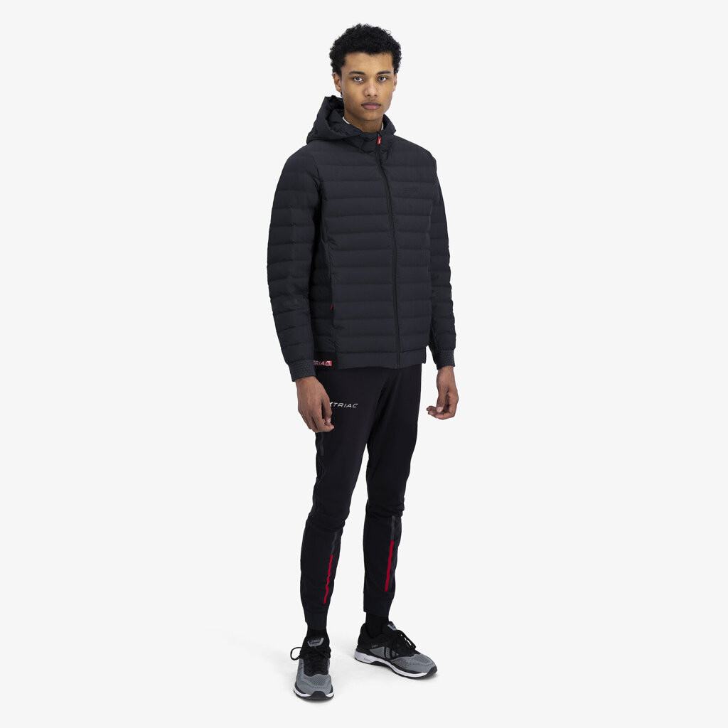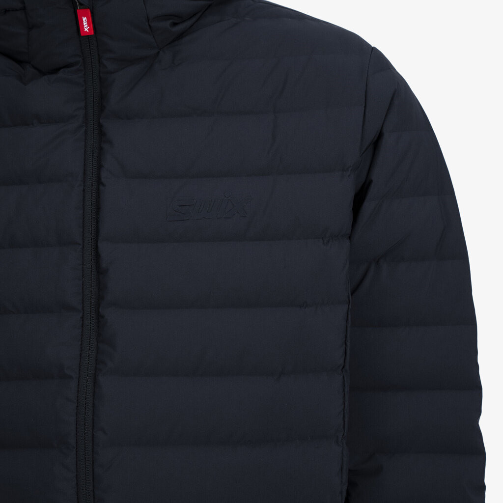 Péřová bunda Triac Down je špičkový vrchní tréninkový oděv značky Swix. Jedná se o maximálně hřejivou bundu, kterou si obléknete před tréninkem i po něm. Izolace v podobě kachního prachového peří s plnivostí 700 Cuin zaručuje vysokou kvalitu tohoto výrobku. Elastické manžety s česanou vnitřní stranou optimální pohodlí. Přiléhavá tvarovaná kapuce a dvě boční kapsy se zipy.