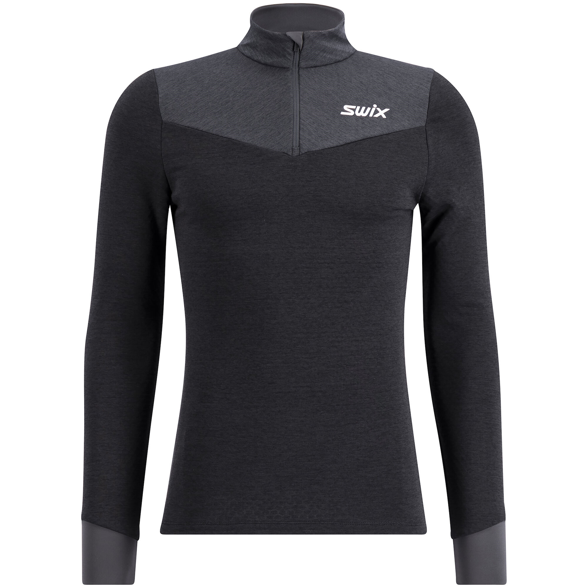 Zateplovací funkční vrstva se stojáčkem a polovičním zipem, navržena pro použití při běhu na lyžích ve vysoké intenzitě v chladnějších dnech. Mikinu lze použít na první vrstvy nebo přímo na kůži. Hlavní materiál má dobrou úroveň pružnosti, rychle schne a má počesanou rubovou stranu. Je konstruován se zipem u krku pro snadné odvětrání, pokud potřebujete uvolnit teplo během aktivity. Elastické manžety na spodním lemu.