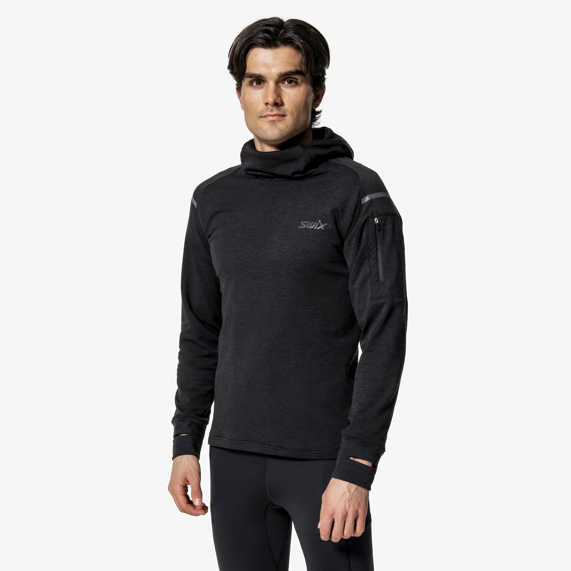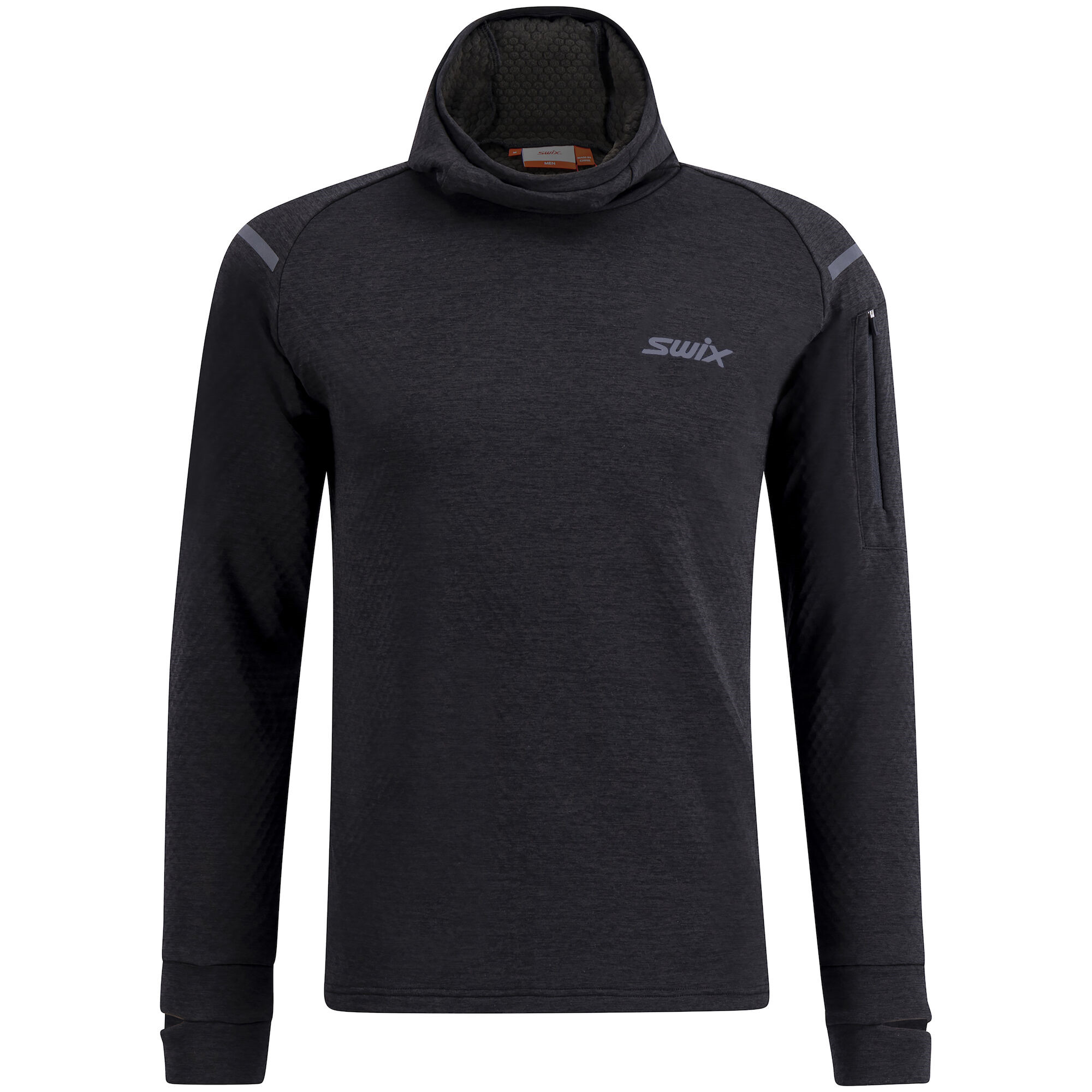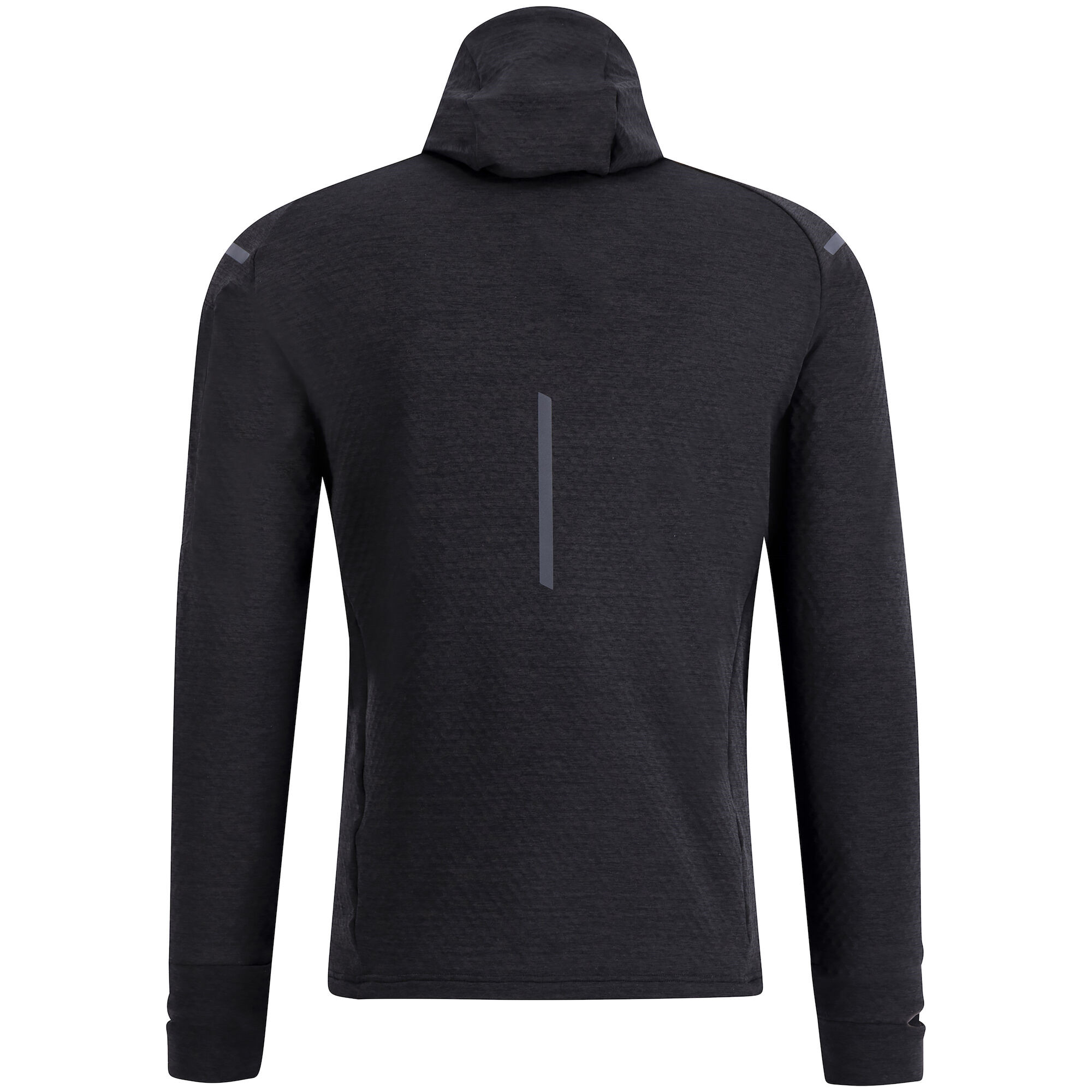Vkusná funkční běžecká mikina, ideální druhá vrstva do chladnějších dnů. Funkční materiál umožní efektivní odvod potu od těla, ale zároveň, díky vnitřnímu flísu ve tvaru plástve, dobře izoluje tělesné teplo. Materiál je hodně strečový ve čtyřech směrech, čili mikina hezky sedí na tělě. Mikina má kapuci a vysoký límec, střih mikiny je volnější. Manžety rukávů jsou opatřeny otvory pro hodinky, případně na palce. Mikina je opatřena reflexním potiskem.Materiál: 94% polyester / 6% spandex