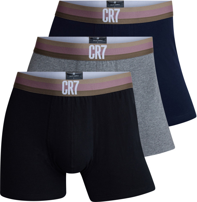 Pánské boxerky CR7 Basic patří do brandu slavného fotbalisty Cristiana Ronalda. Mají elastický pas, jenž je drží na místě. Jsou vyrobeny z prvotřídního pohodlného materiálu. Balení obsahuje tři kusy boxerek.