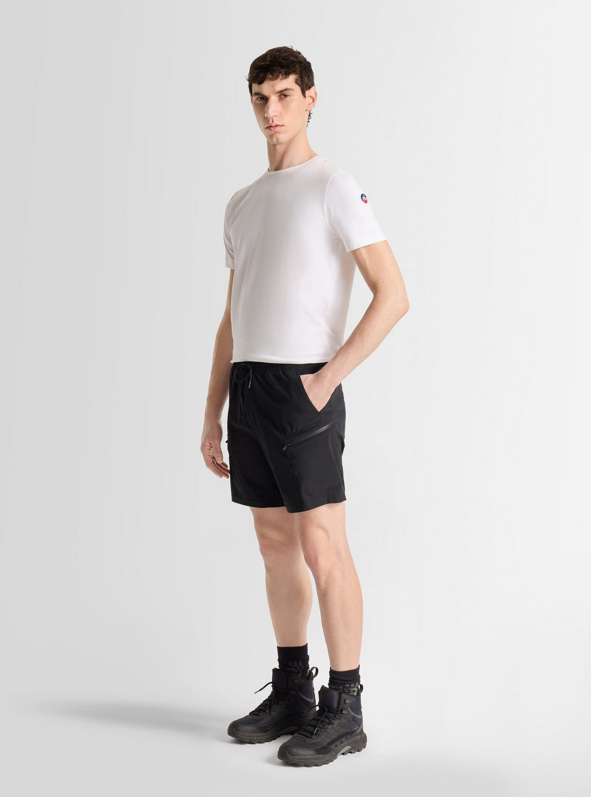 Kraťasy THILO - černý splývavý, mírně pružný keprPohodlné oblečení, které se přizpůsobí Vašim aktivitám a zároveň Vás chrání před okolím.Šortky Thilo spojují technický výkon s moderním stylem. Jsou vyrobeny z lehké tkaniny a disponují elastickým pasem se stahovací šňůrkou pro optimální pohodlí a dokonalé přizpůsobení. Boční a zadní švy decentně odkazují na ikonické zúžené kalhoty značky Fusalp, zatímco dvě boční cargo kapsy s voděodolnými zipy nabízejí funkčnost a výrazně technický vzhled. Univerzální styl navržený pro kombinaci výkonu, pohodlí a moderní estetiky. Boční kapsy na zipElastický pas se stahovací šňůrkouKontrastní pruhy na bocích a zádechTento přiléhavý střih se rozšiřuje pod boky až ke spodnímu lemu. Doporučujeme objednat Vaši obvyklou velikost. Pokud jste mezi velikostmi, zvolte tu větší.Složení: 85% POLYAMID 15% ELASTANpodšívka kapes: 100% POLYESTERPéče: Před praním v pračce zapněte všechny zipy.Perte narubyPerte s podobnými barvami a pouze při uvedené teplotě.Nepoužívejte optické zjasňovače.Nepoužívejte avivážNenechávejte oděv mokrý: skladujte jej složený.