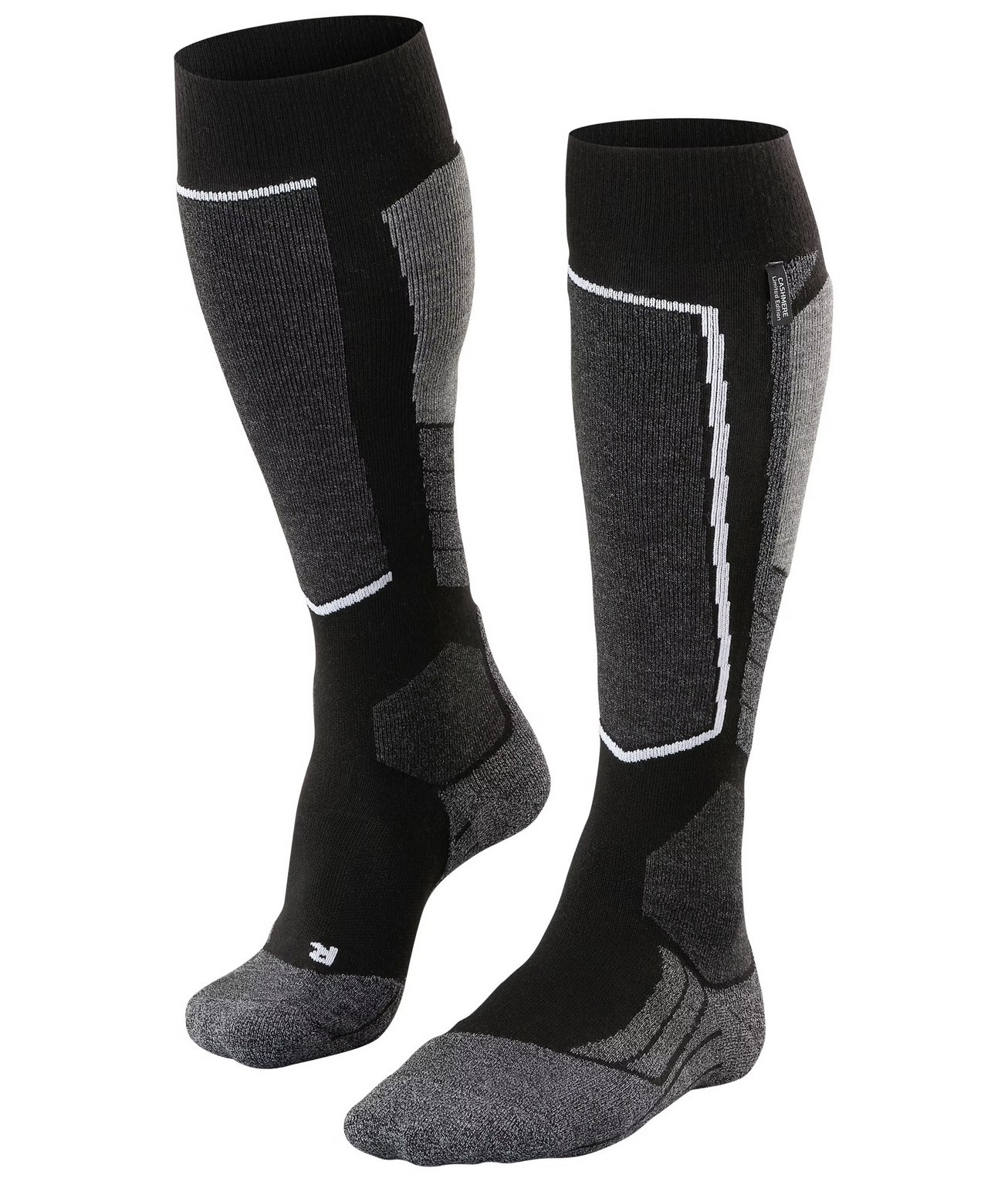 Univerzální pánské lyžařské ponožky FALKE SK2 jsou ideální pro rekreační lyžaře. Jejich středně silné odpružení zajišťuje optimální ochranu a vyvážený kontakt s botou. Vysoce kvalitní kašmír nejenže nabízí vynikající tepelnou izolaci, ale také přispívá k pocitu měkkého pohodlí. Rychlý přenos tepla a odvod vlhkosti spolu s optimalizovaným tvarem zaručují vynikající pohodlí a bezstresový den strávený na lyžích.