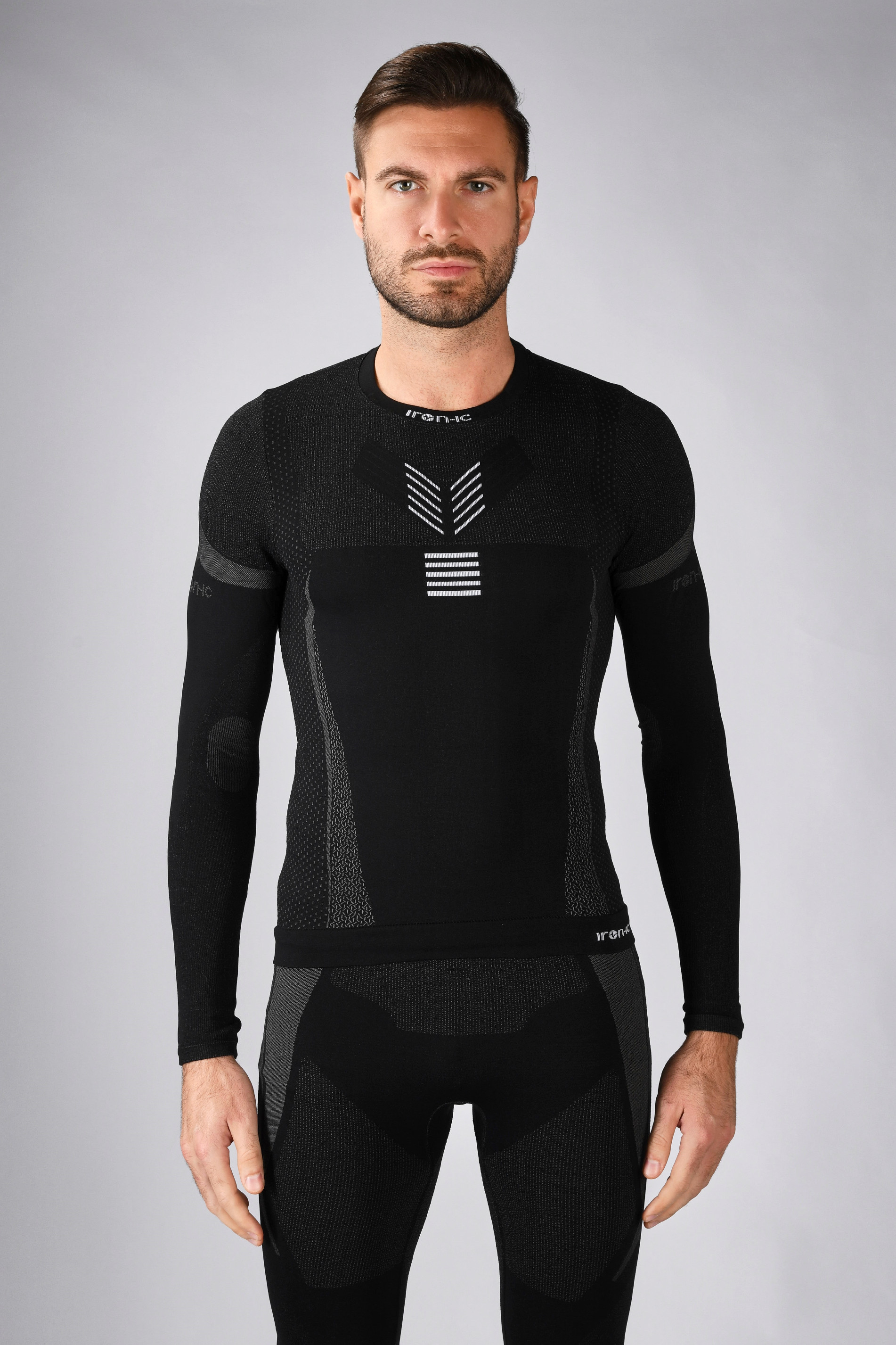 Přiléhavý střih slim fit dolňuje prodloužený zadní díl, který díky patentované technologii i-Band perfektně drží na svém místě, takže vám nehrozí holá záda. Atraktivní italský design podtrhuje Iron-ic logo na krku, obou rukávech a na zádech.