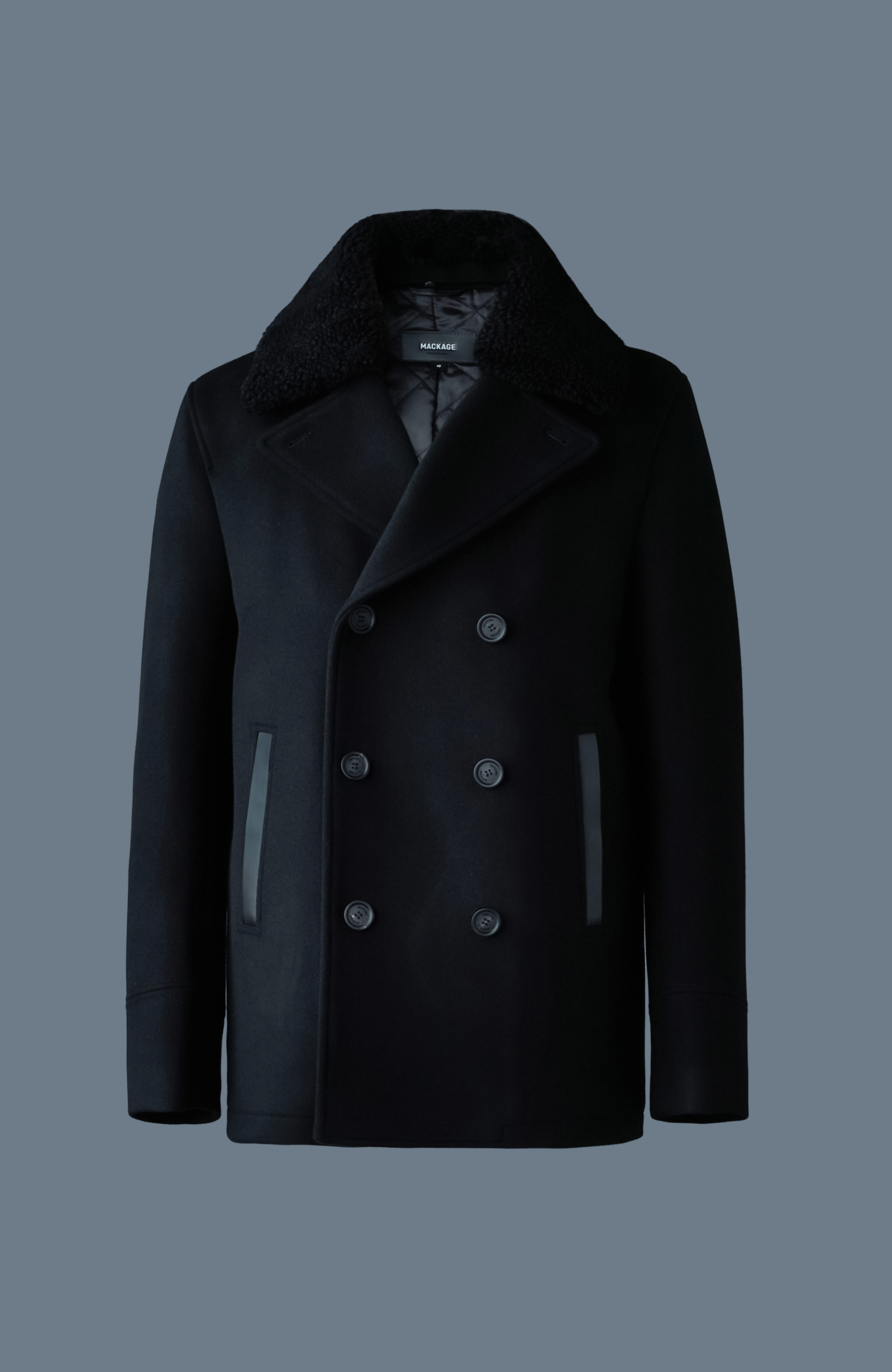 Vrchní materiál z 100 % vlny a kombinovaný materiál z 100 % jehněčí kůže doplňují podšívku z polyesteru a viskózy a výplň z polyesteru, což z kabátu činí prémiový kousek, který nesmí chybět ve vašem šatníku.