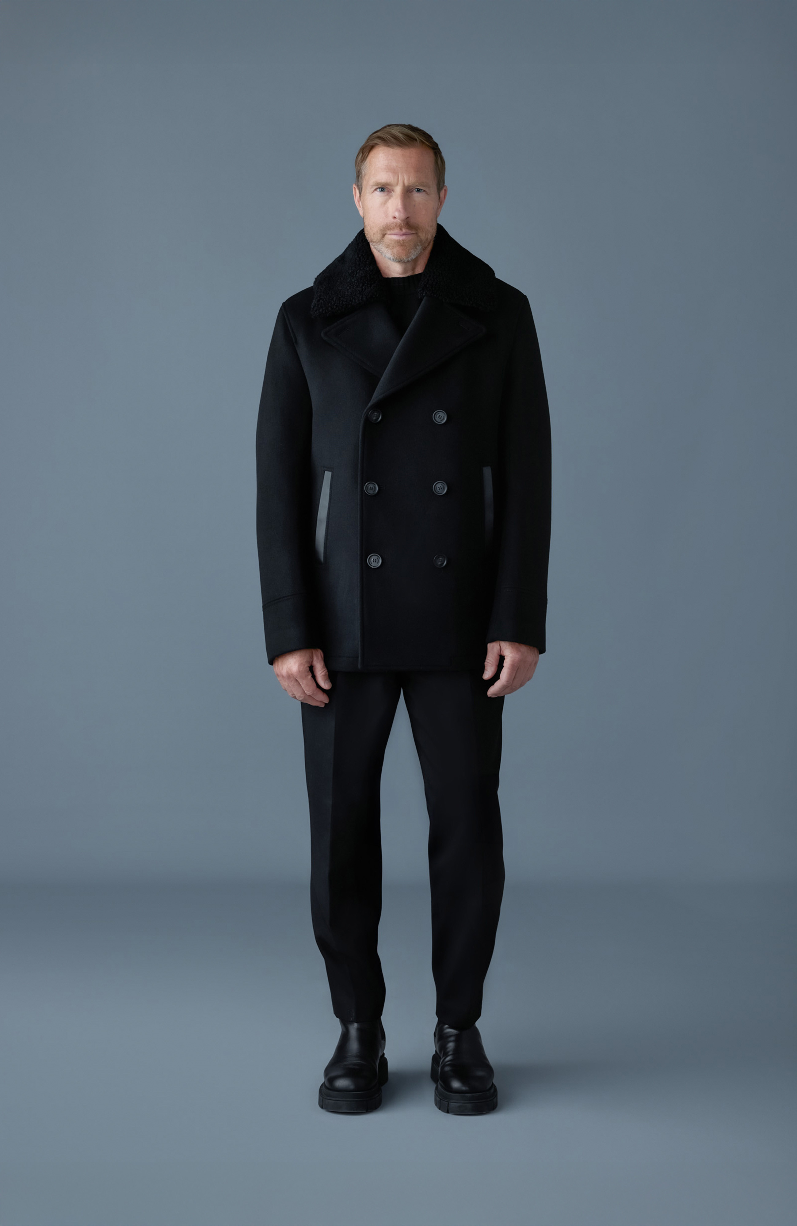 Vlněný dvouřadý kabát s límcem z beránčí kožešiny Mackage COLE představuje klasickou eleganci spojenou s výjimečnou funkčností. Tento dvouřadý vlněný kabát s odnímatelným límcem z beránčí kožešiny je dokonalým společníkem pro chladné dny.