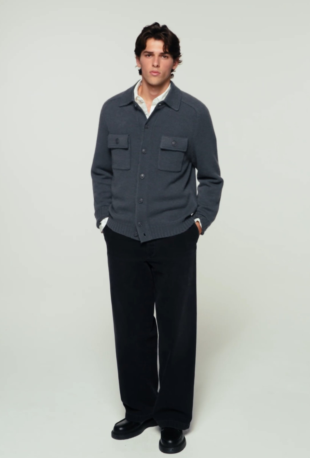 • Gris chine clair Šedádetail Pánský svetr FROM FUTURE CARDIGAN GRIS CHINE CLAIR